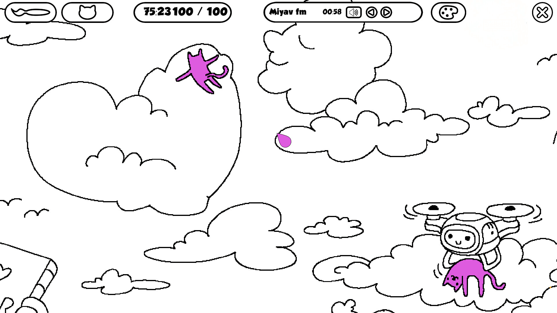 Grab your crayons and hunt for 100 hidden cats across a beautifully hand-drawn map. Play solo or invite a friend to join online, then bring each scene to life with guided color-by-numbers or your own palette — all in a relaxing, soothing atmosphere.