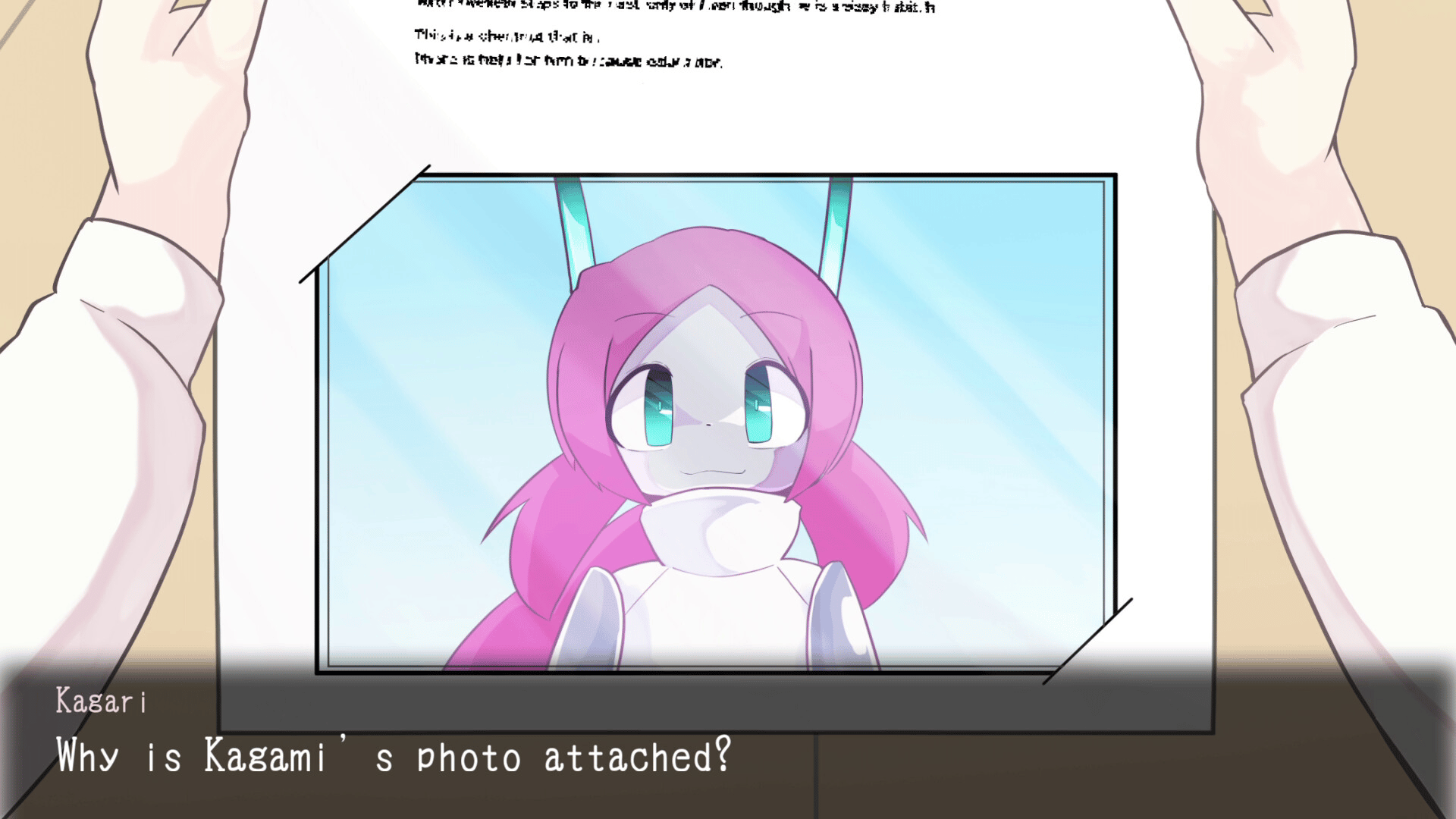 Kagari, a withdrawn child, and Kagami, the robot living in society as their stand-in— Only one will be recognized as the real Kagari. Your role is to gently observe their choices and decisions.