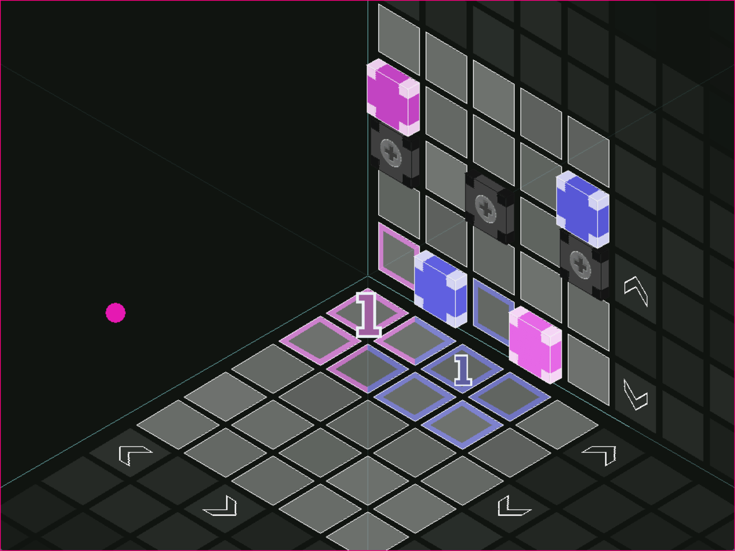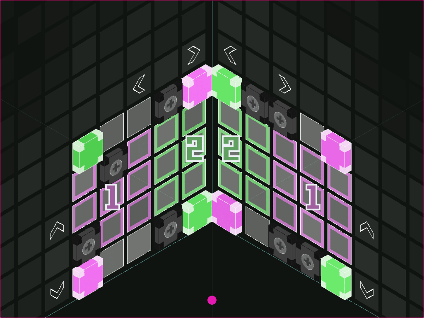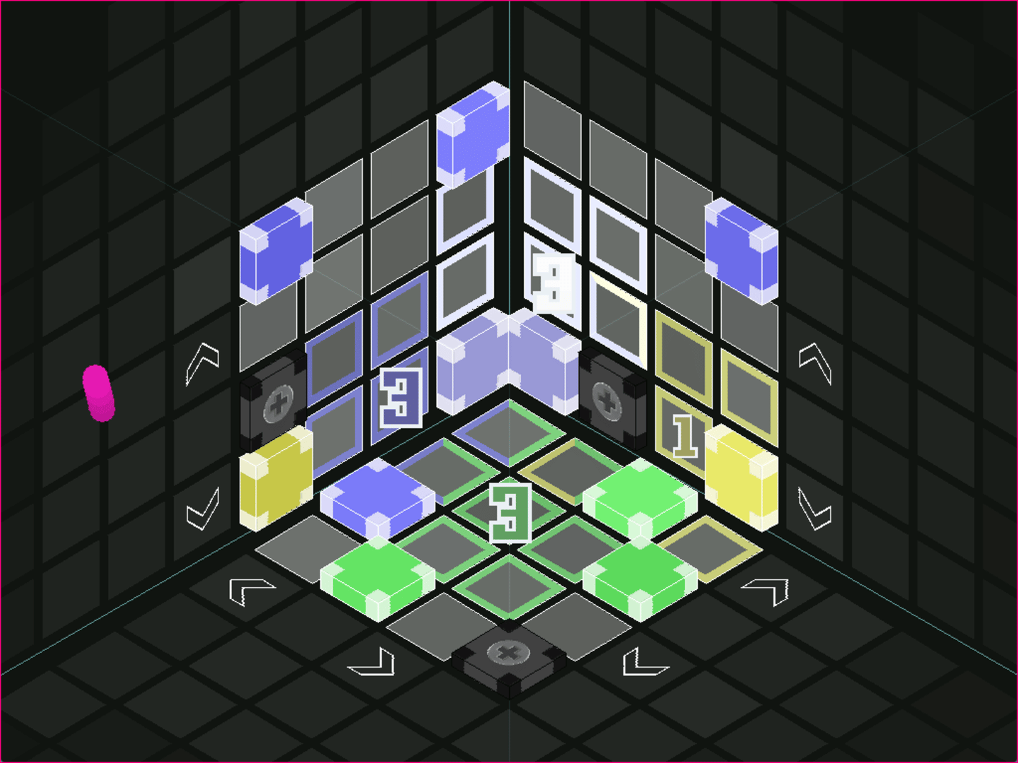 "COLORFUL MINES =SLIDE=" is a puzzle game that combines minesweeper and slide puzzle into 3D. Click "<" ">" to slide the colored panels, and clear the stage if all the numbers match the colors and numbers of the surrounding panels.