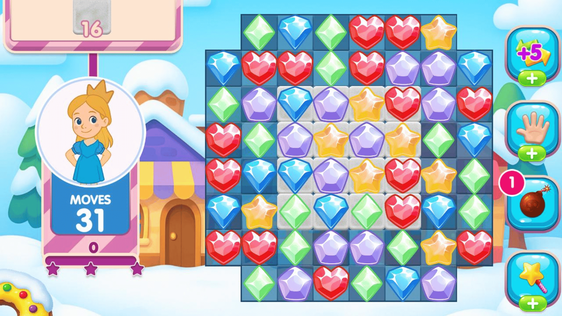 Solve 100 levels in this match 3 game with a beautiful princess in a magical ice world