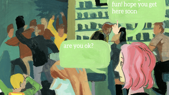 Freshman Year is a vignette game about an ordinary night in the life a college freshman named Nina. Nina's best friend Jenna invites her to meet up at a local bar with some classmates. Jenna is sort of flaky though, so Nina has to navigate the party by herself. You play as Nina, texting with her friend Jenna as you mingle, dance, drink and wait.