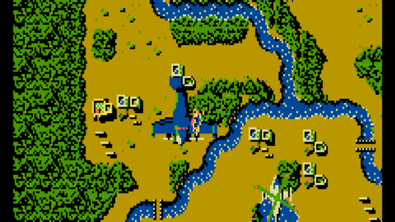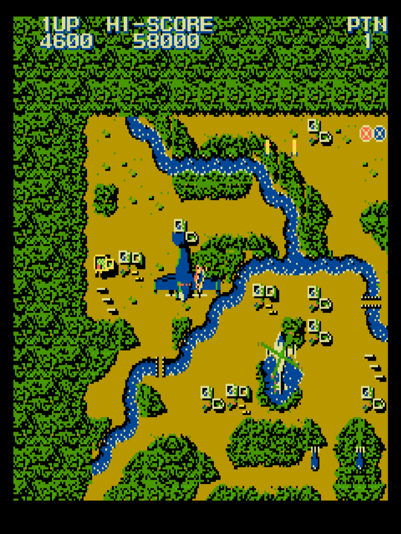 Liberation is a 2D scrolling top down shooter. The game has two sections - first, the player controls a helicopter, flies over forests, shoots enemies and searches villages. After the helicopter lands, the player controls a tank or other vehicle and must rescue prisoners in the village. Shooting in the helicopter section is quite typical, but as opposed to most other top down shooters, the screen isn't automatically just vertically moving, the player can freely fly over the battlefield (but he can shoot only forward). Tank control is similar to Jackal - the vehicle moves and shoots in every direction. In garages, the tank can be replaced by a jeep.