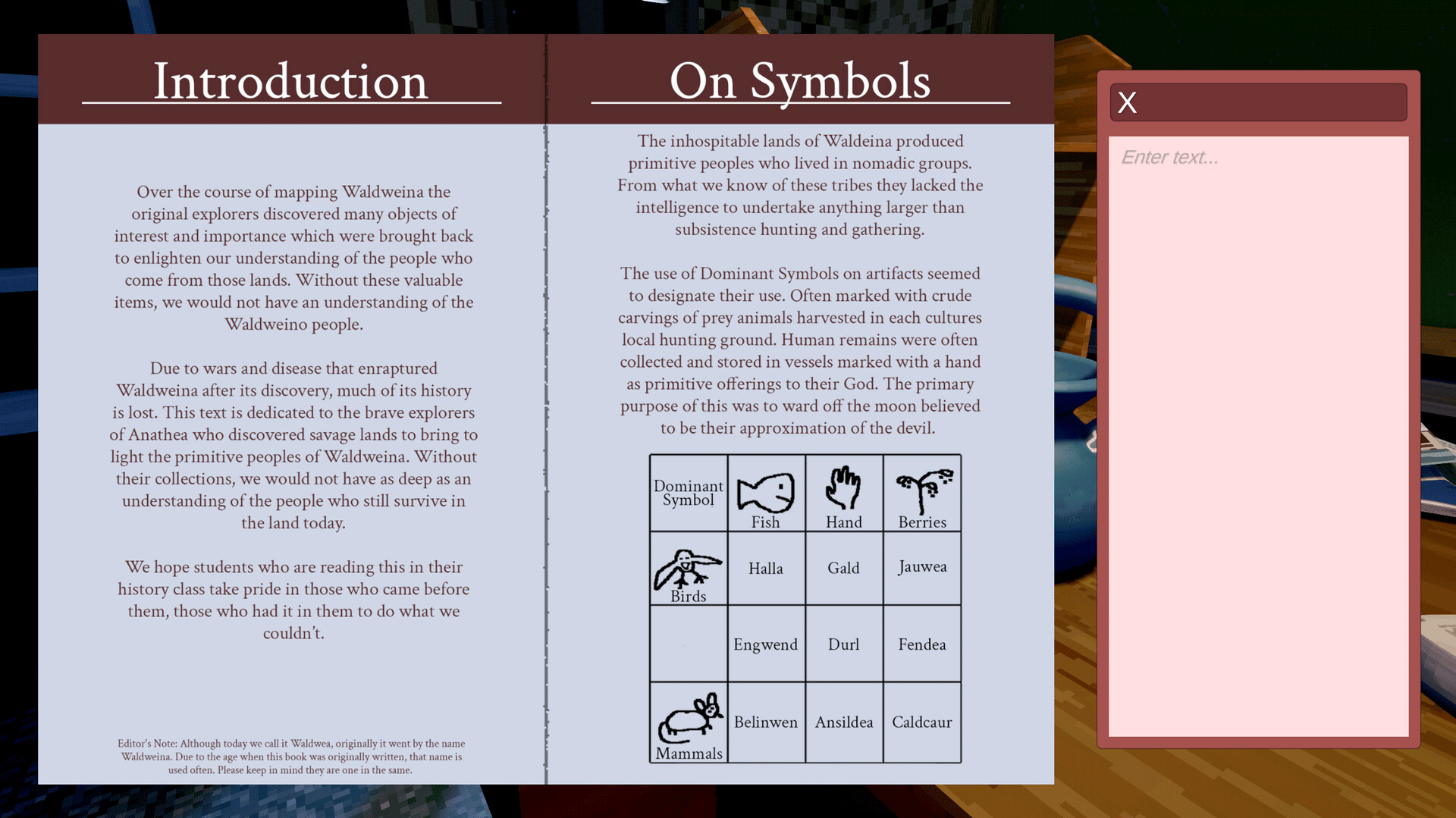 Take on the role of a struggling museum's curator who receives a mysterious challenge to identify artifacts from the ancient civilizations of Waldwea. Dive through a broad range of academic texts in order to identify the artifact's culture and the era it was produced in. Will you save the museum?