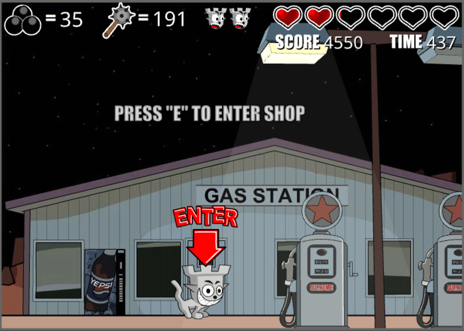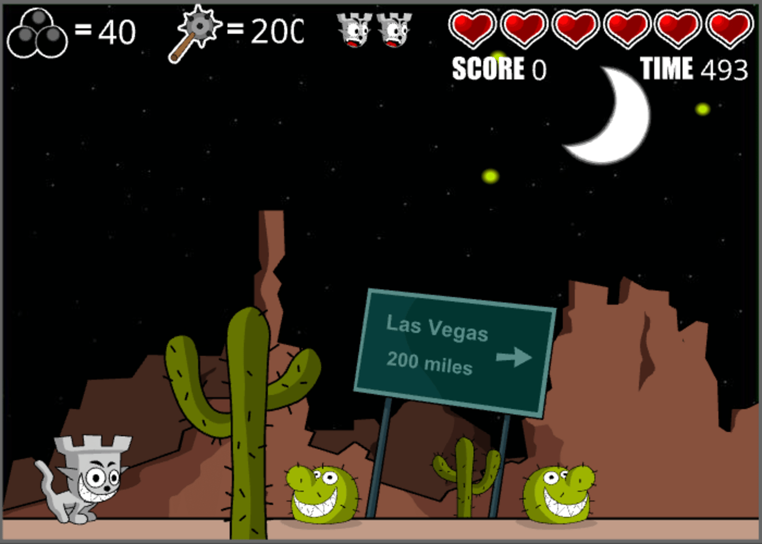 The third entry in the bizarre Castle Cat series sees the titular feline fortification travel to Vegas for no stated reason in particular, this is the most normal thing in this run n gun platformer