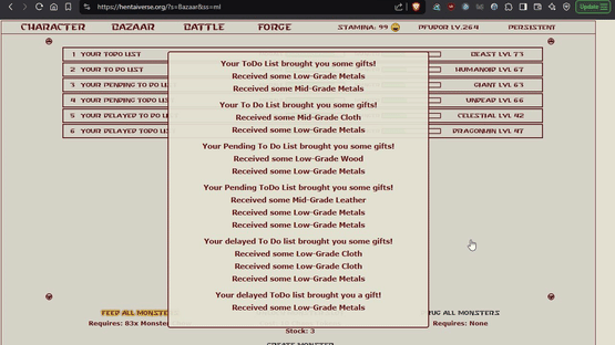 The HentaiVerse is a free browser-based online RPG launched in 2009 by E-Hentai.org and found at hentaiverse.org. In the HentaiVerse players fight monsters in a variety of battle modes in order to gain EXP and level up as well as earn credits and various items. The game lacks graphic erotic content, except for the funny names of the monsters being fought.