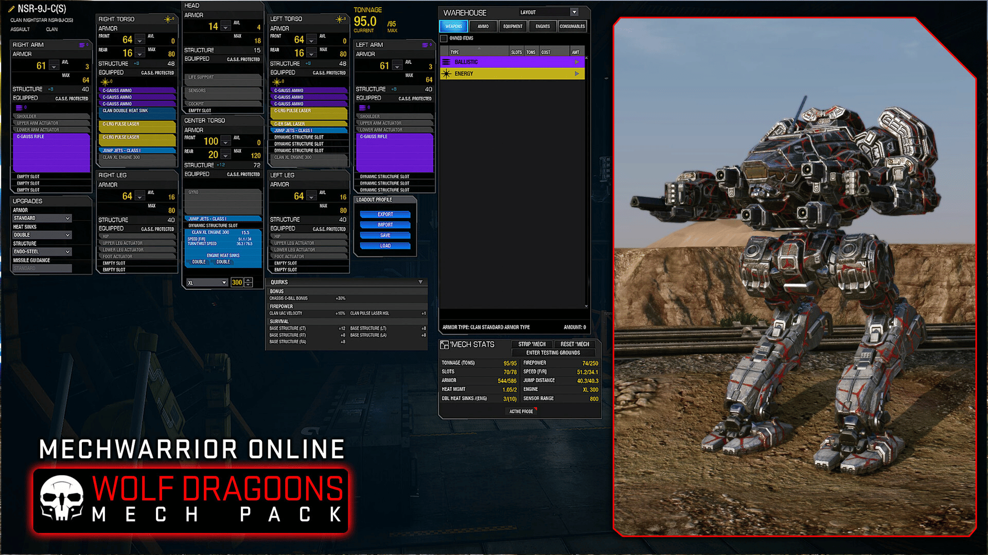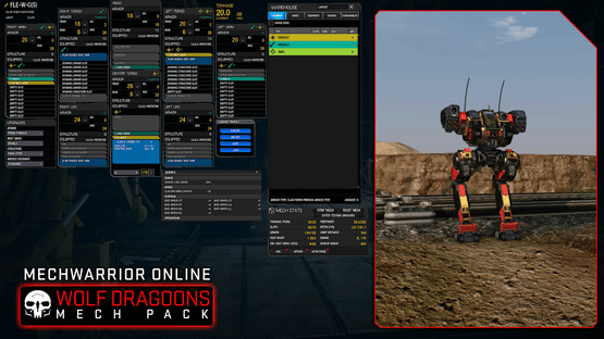 Hiding in plain sight, the Wolf's Dragoons mech pack brings the superiority of Clan technology with the inconspicuous appearance of Inner Sphere mechs. The Wolf's Dragoons pack contains 4 Mechs, 4 Mech Bays, a title, badge, decal, and set of cockpit items.