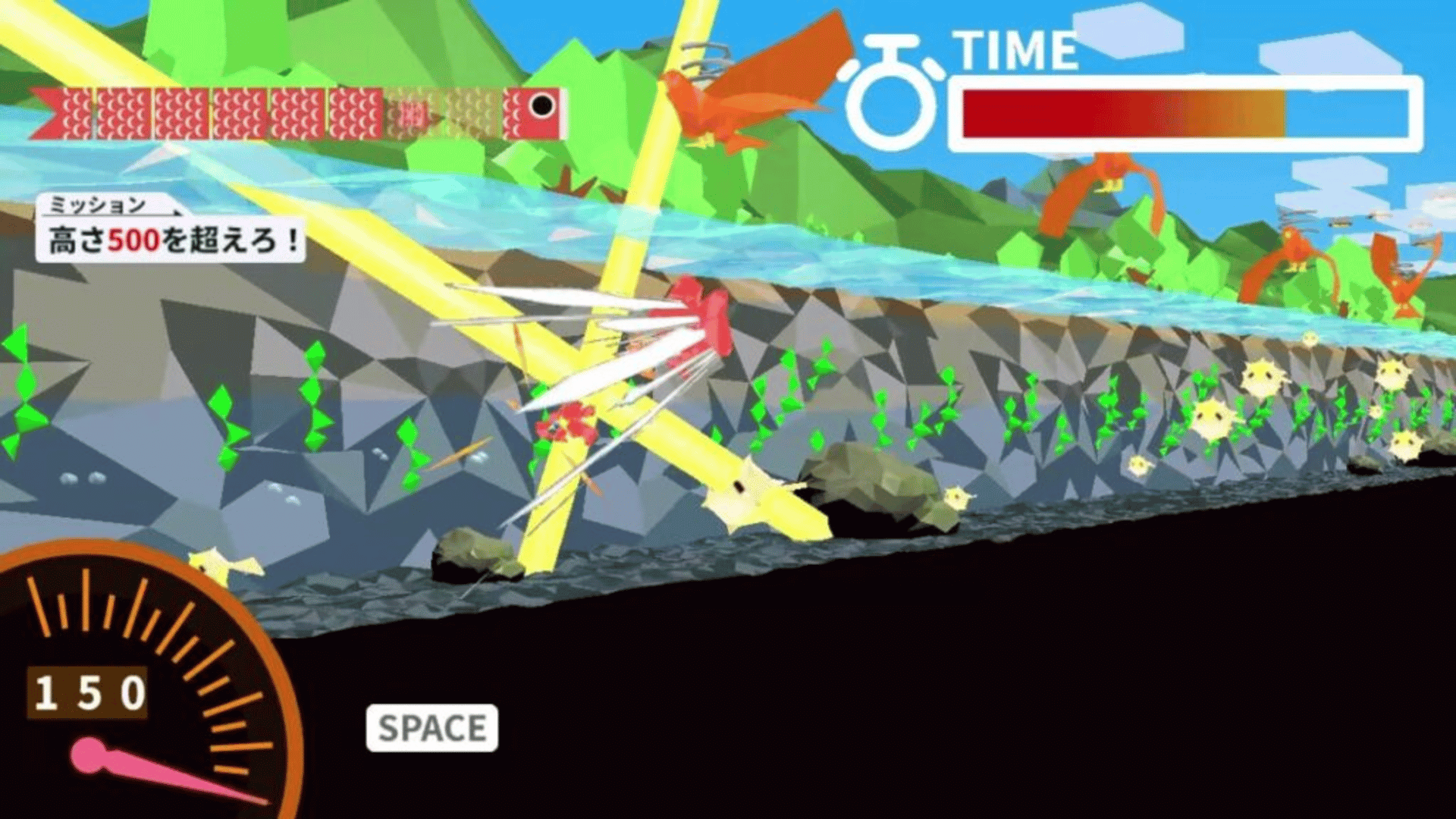 Control the carp and send it flying high into the sky! Control the Koi that swims automatically with one-button operation. Use fish in the water and birds in the air to reach higher!