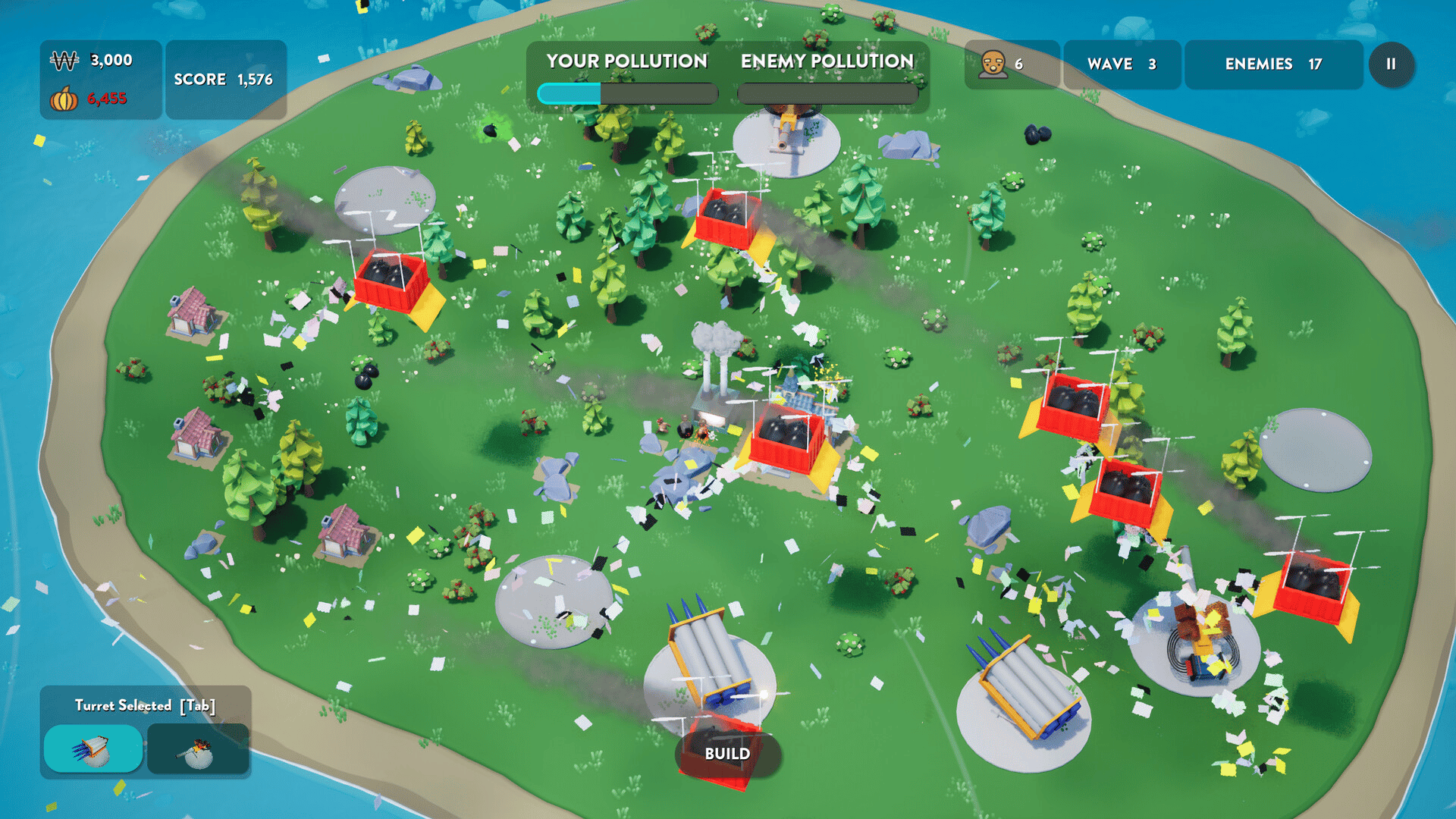 A 3D hybrid tower defense game! Defend against trash, send trash. Manage resources, build turrets, automate defenses, and survive against pollution.