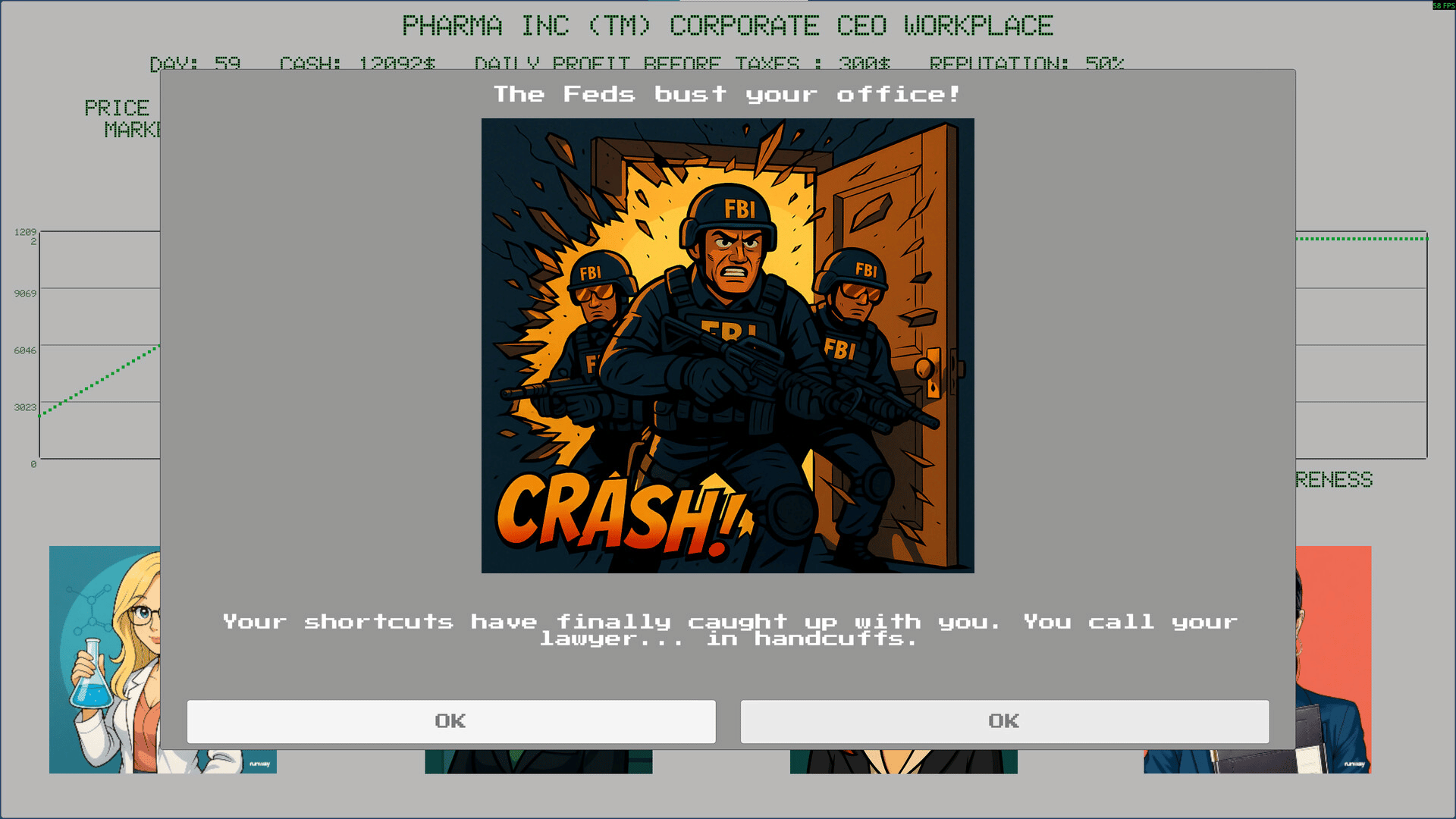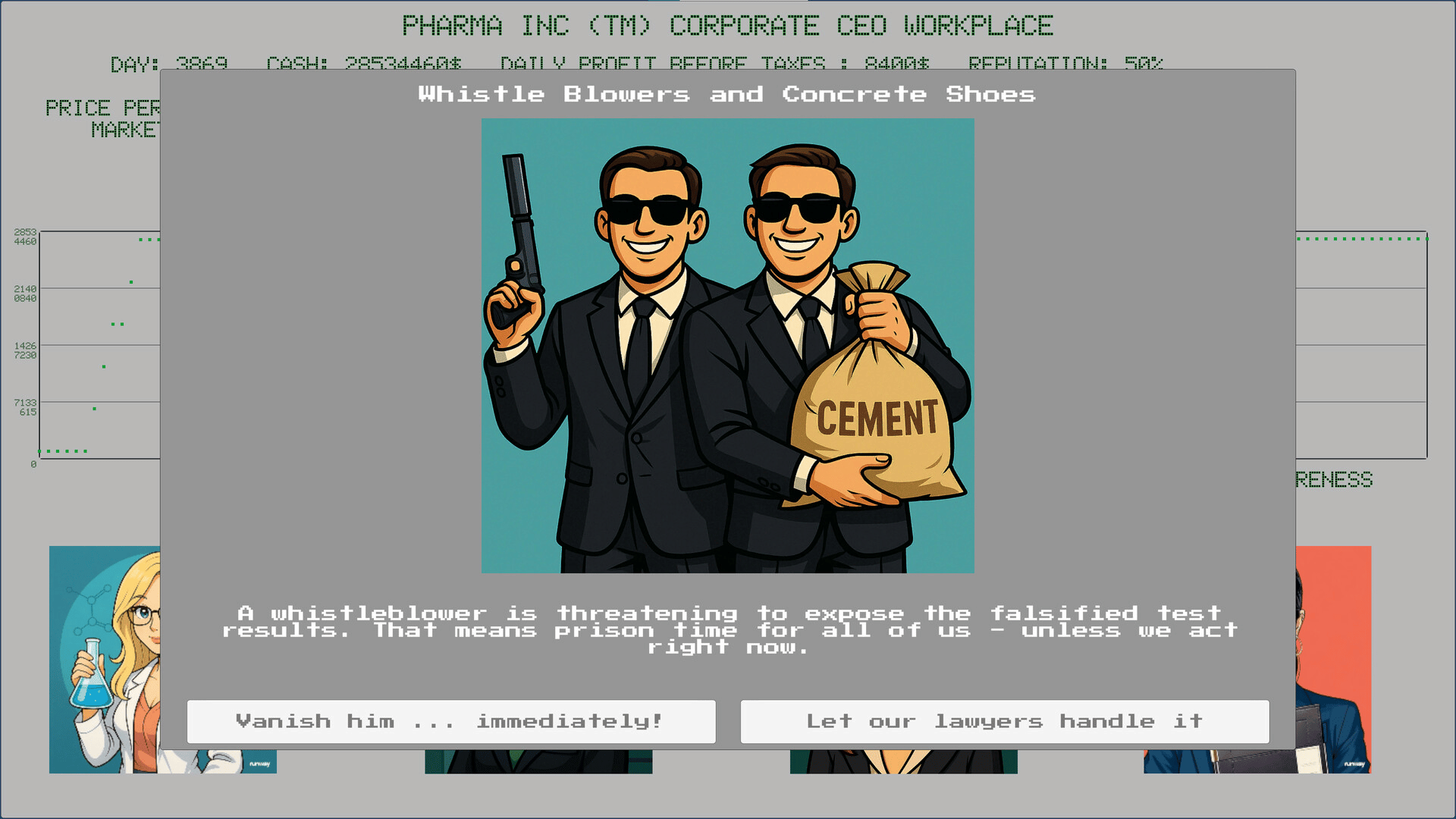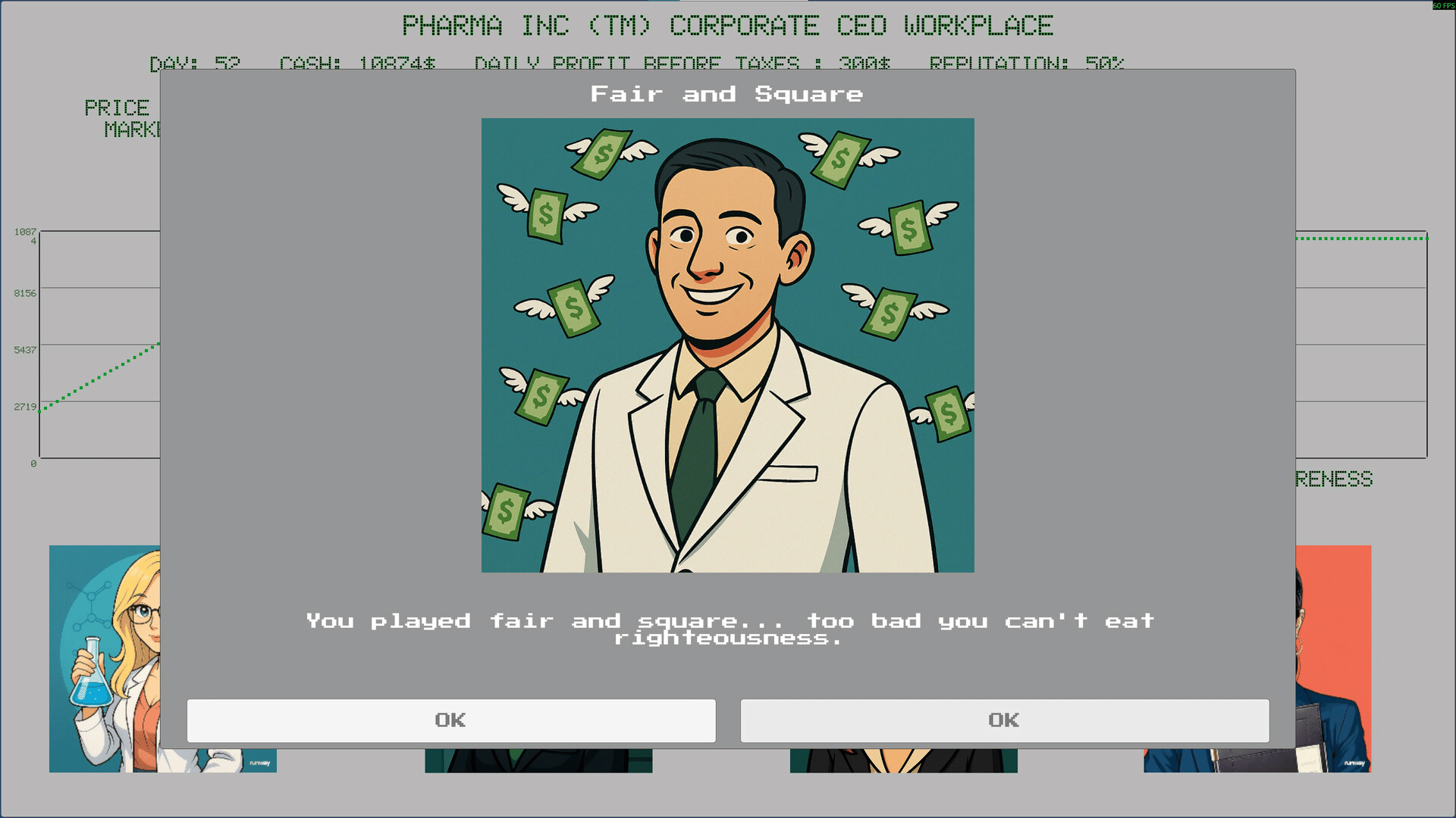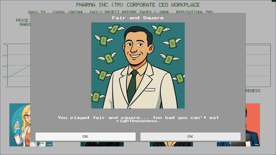 Build your own pharma empire - on fair play or greed. Face the consequences of every decision in this darkly humorous, satirical sim: set market prices, manage production, boost your brand, make tough choices... and see where they take you.