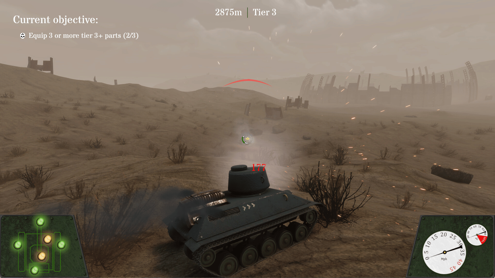 Control a dishevelled tank in a post apocalyptic wasteland. Look for new parts to survive and upgrade yourself. All of the other tanks in the scrapyard have the same goal, which makes them hostile in this survival of the fittest arena.