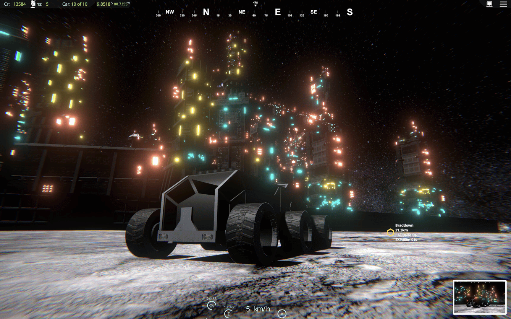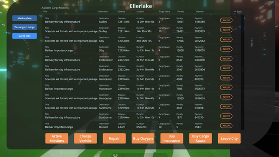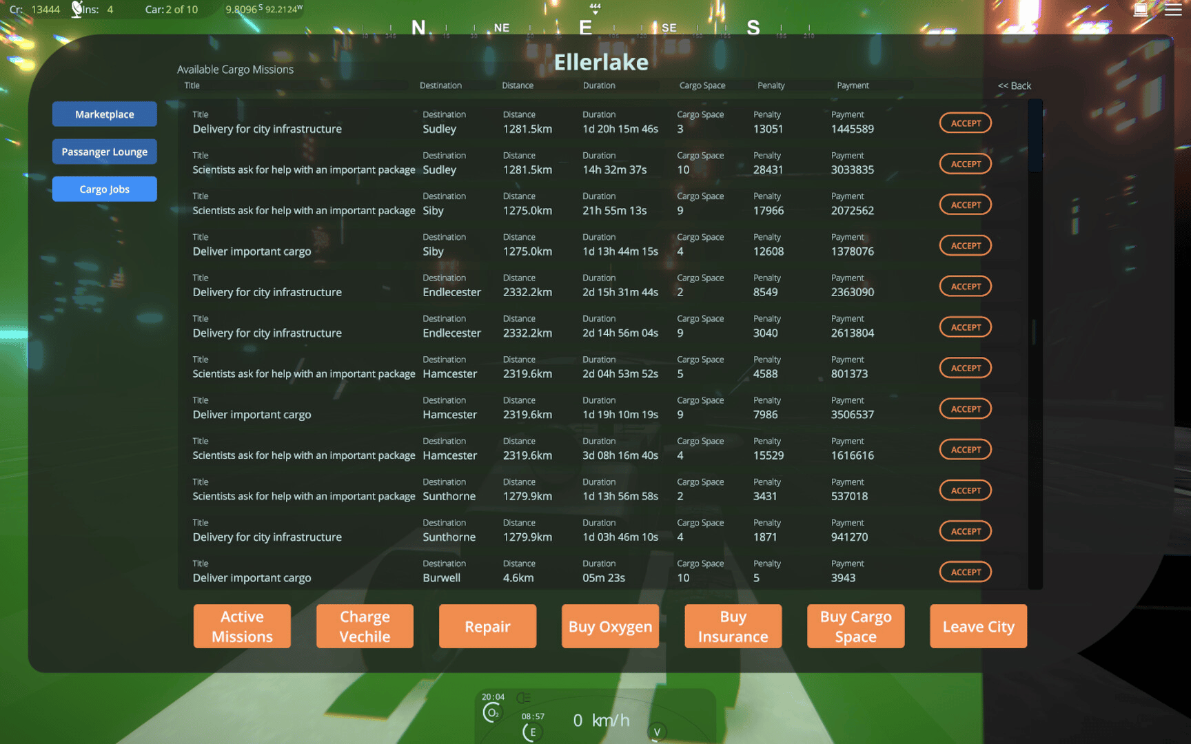 Do cargo missions between bases and cities founded on the future moon. You can drive to anywhere you want, however, you are limited with the capabilities of your vehicle. Drive fast and you take risk of a sudden death, drive slower and you take risk of failing your missions for not delivering on time.
