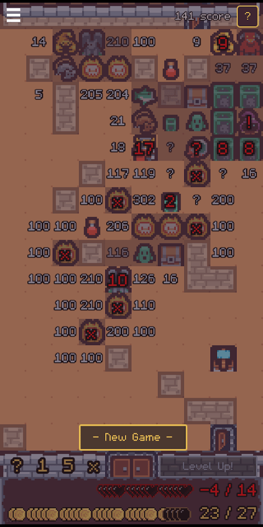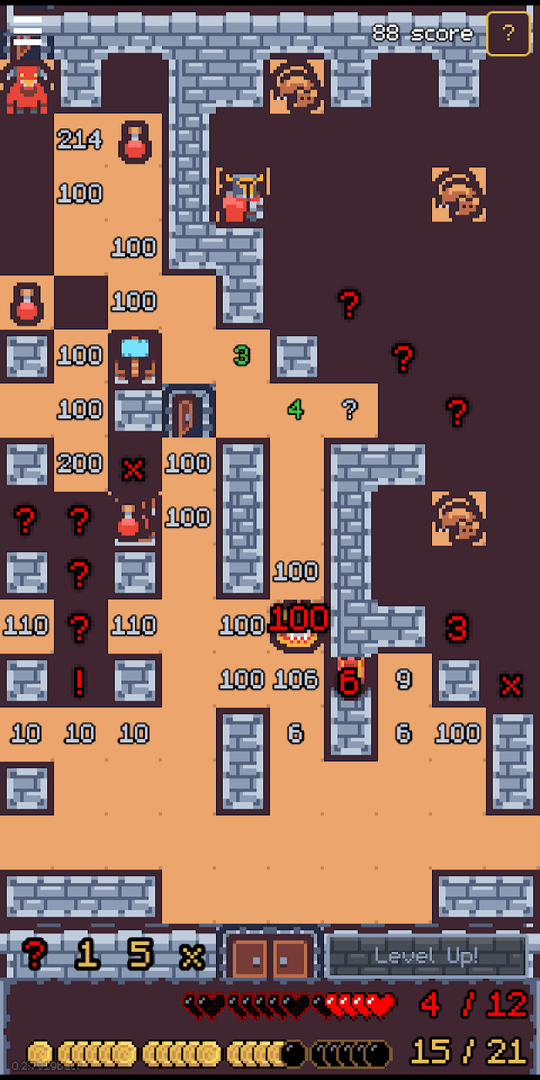 It's a direct descendant of Dragonsweeper, which in turn is a spin of Mamono Sweeper. The game focuses on Android gameplay (touch, small screen size) and uses Kenneys tiny-dungeon assets and sounds from freesound.org.