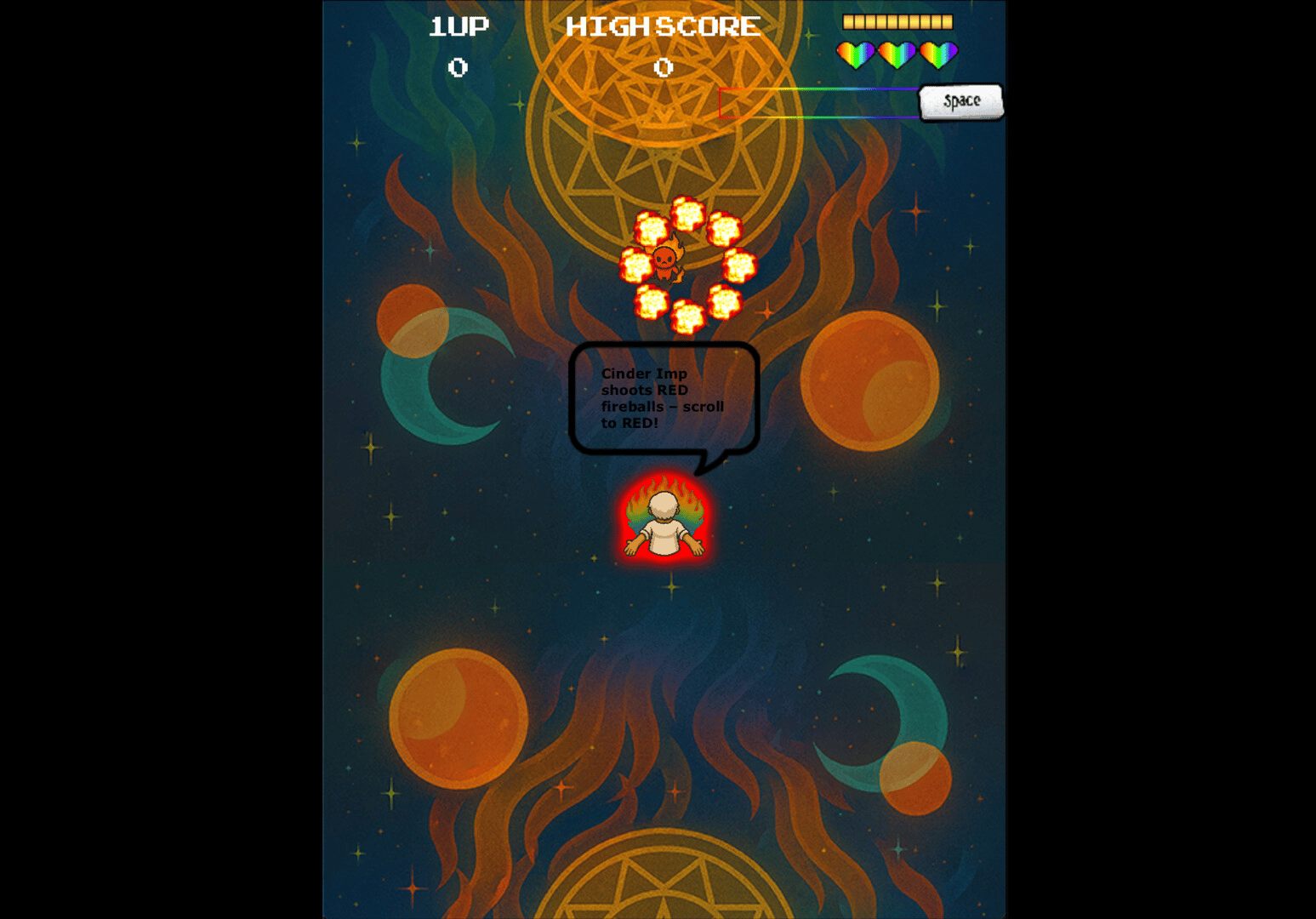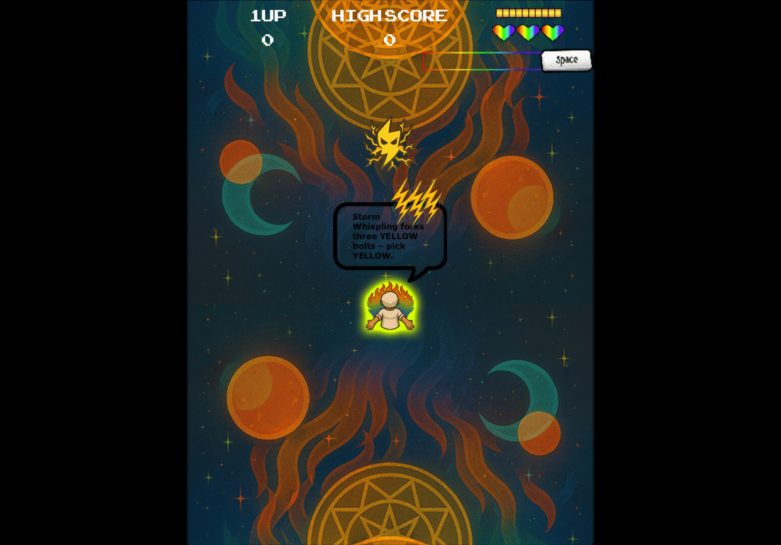 A 2D bullet hell plane shooter game with a creative twist in gameplay—instead of shooting down enemies, pick a matching color and swipe them.