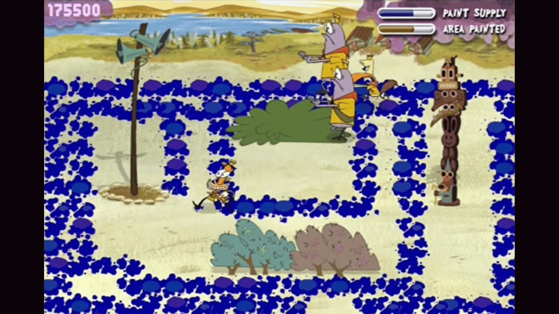 Grab a can of paint and spruce up Camp Kidney before Edward and the Dung Beetles stop you. Let loose in Paintcan Panic. The goal of the game is to fill the ground with paints while the Pintos are trying to catch you.