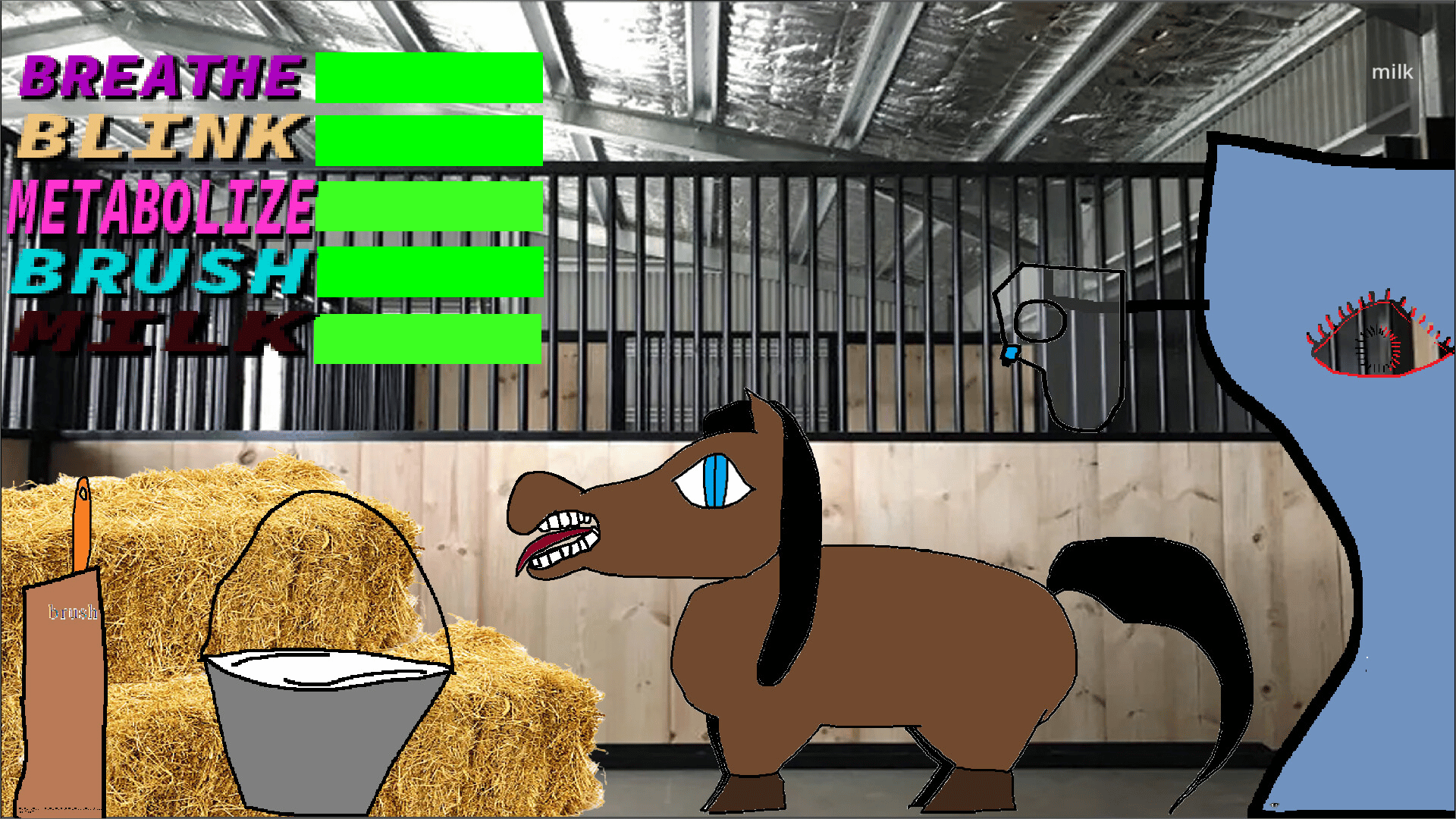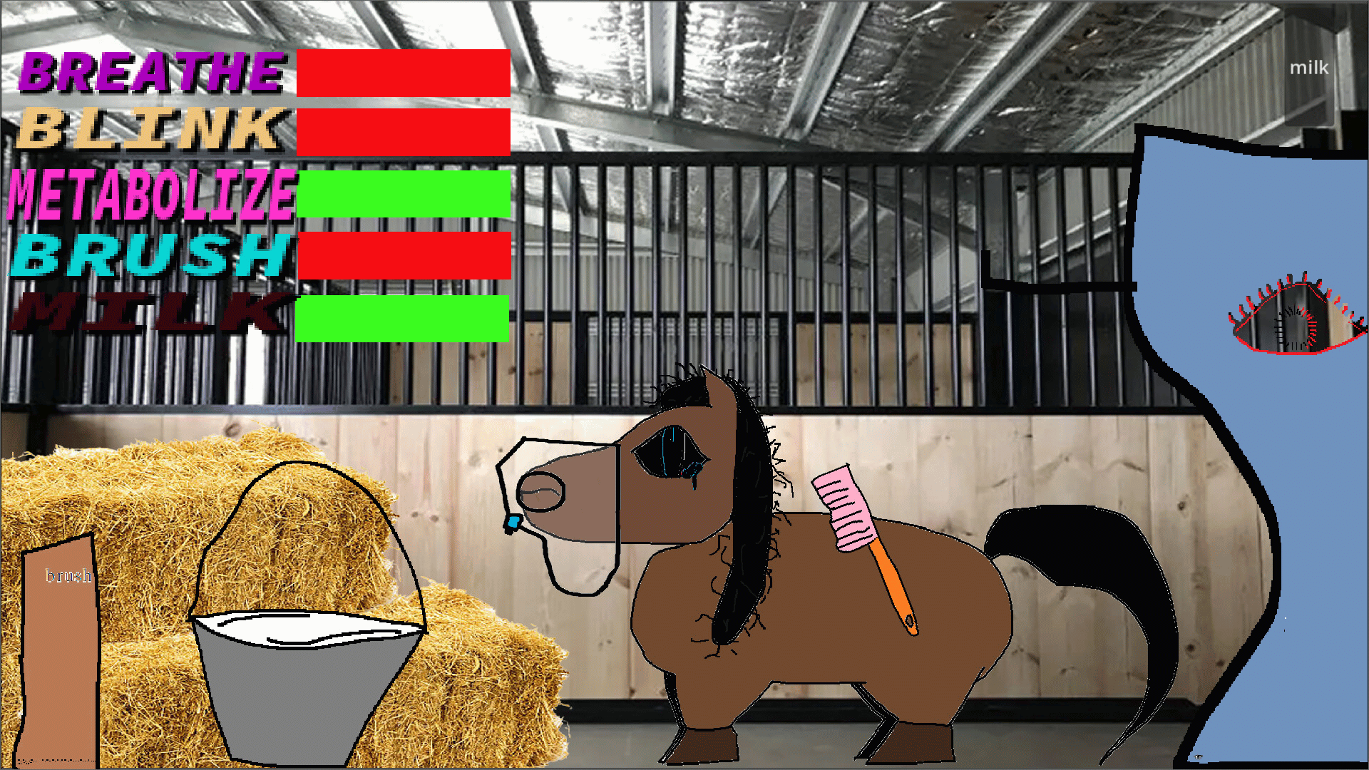 The scrawny, flimsy, pathetic thistles of your brush glide through the horse's black hair. They're weak, but plentiful enough to make a difference. This horse requires your care, more than you think relies on it.