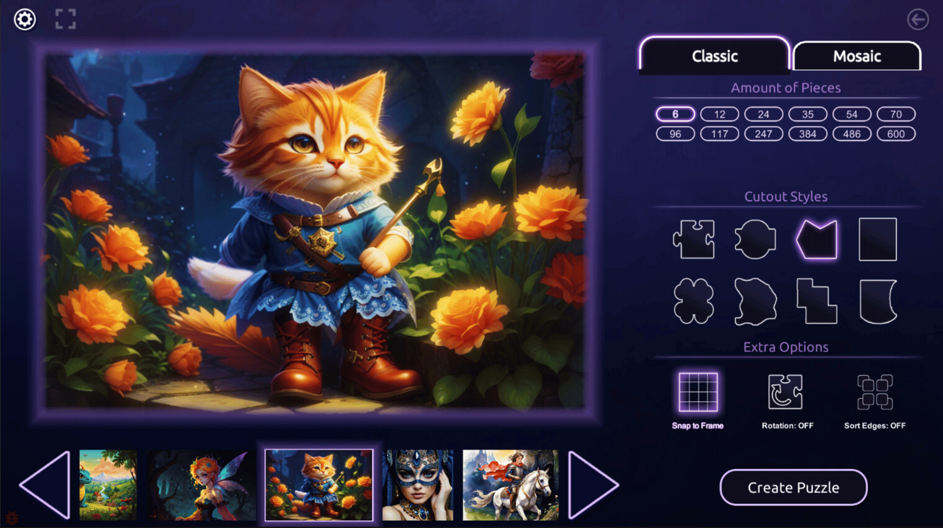 The "Fairy Tales" collection is a series of 39 puzzles that capture the essence of classic fairy tales, filled with enchanted forests, mythical creatures, and mysterious characters.