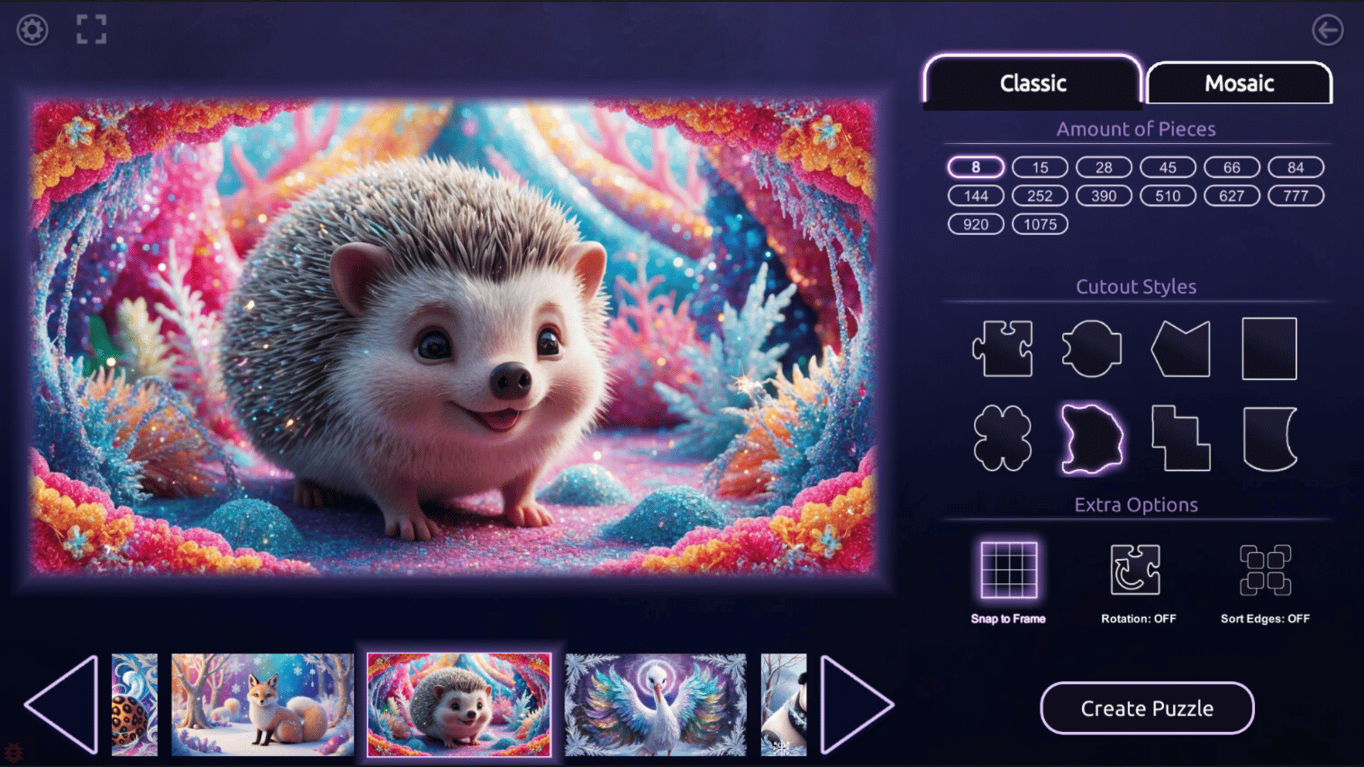 Experience the magic and charm of the season through the eyes of nature's most enchanting creatures. This collection of 39 puzzles beautifully combines the warmth of the holidays with the whimsical allure of winter, creating a delightful celebration of animals in a sparkling holiday setting.
