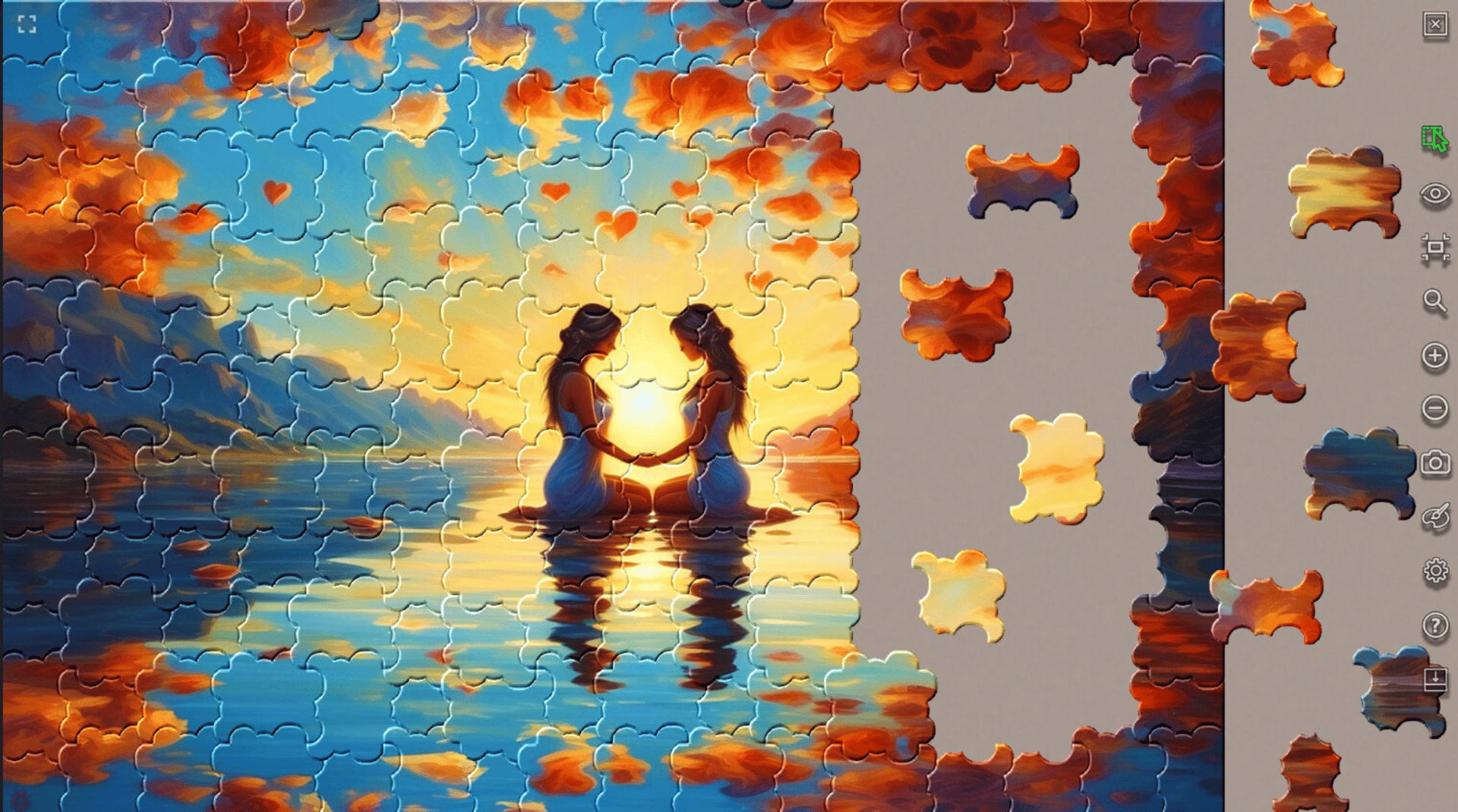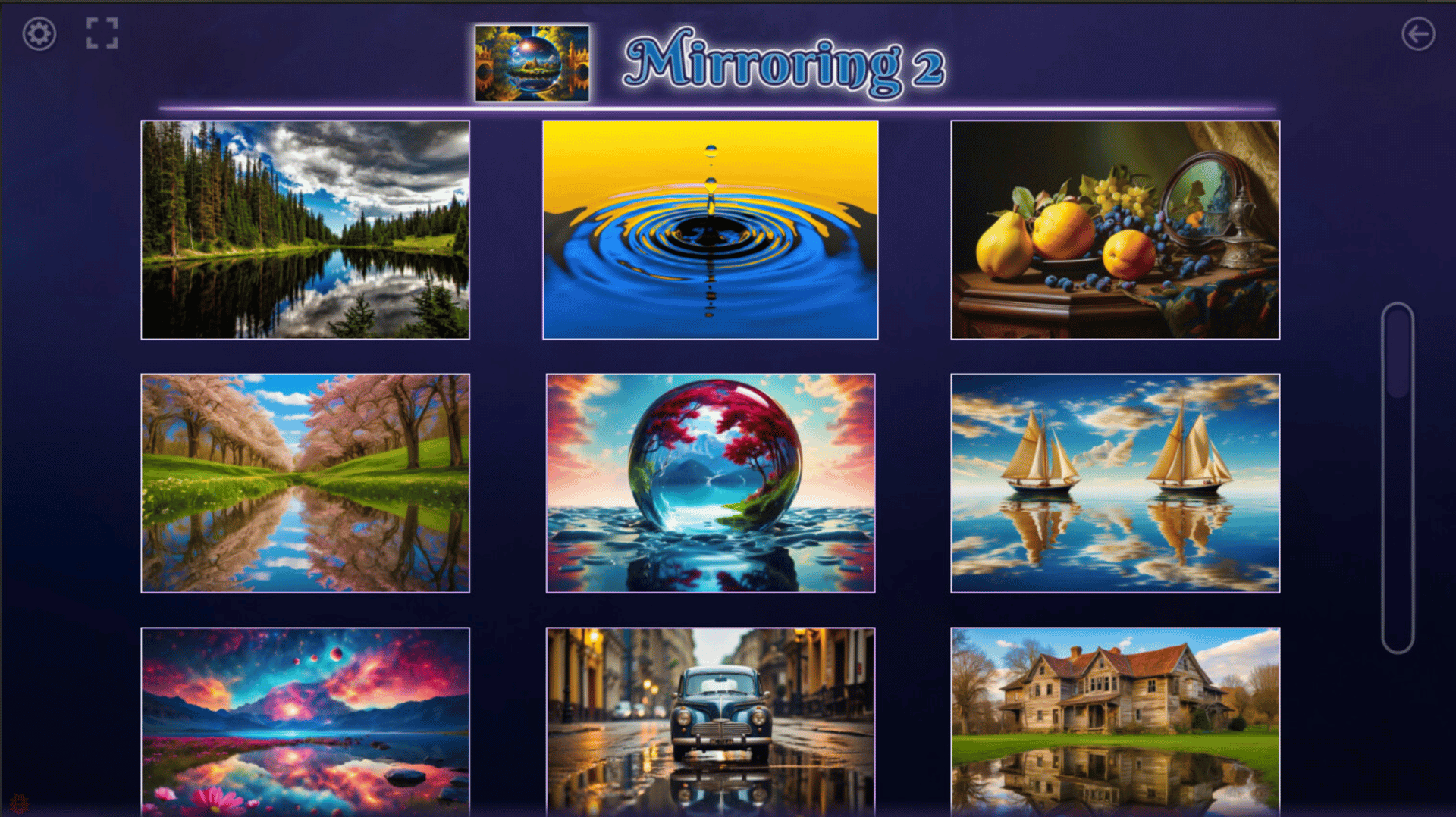 There are reflections in water, glass, and metal. The most beautiful 36 reflections have been collected in the "Mirroring 2" package, allowing you to admire them while enjoying the puzzle-solving experience.