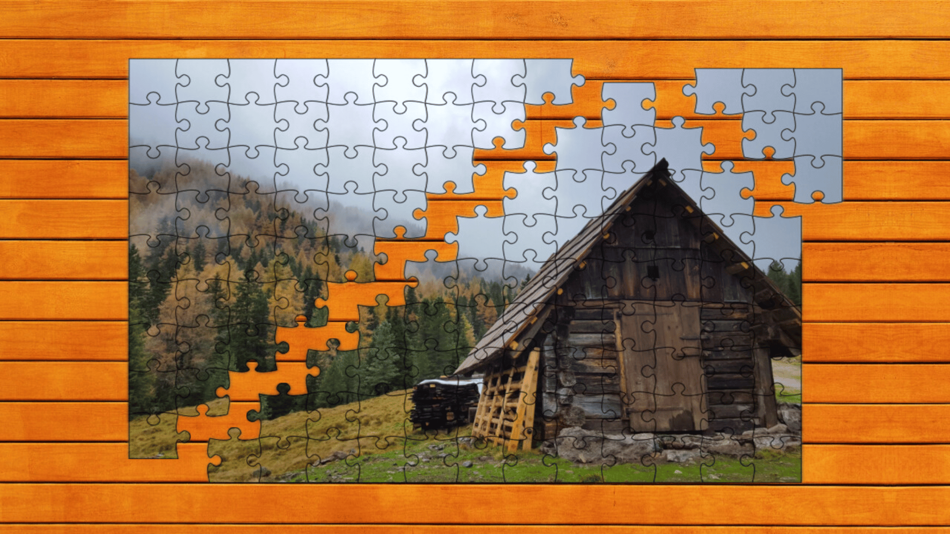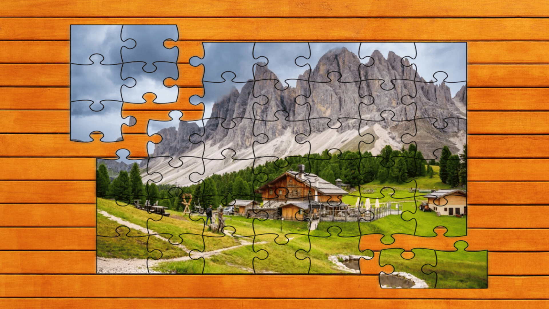 In this DLC, explore 16 new puzzles in Timber Trails: Alpine Puzzle! Discover rustic cabins, towering pines, and snow-capped peaks in stunning alpine scenes.