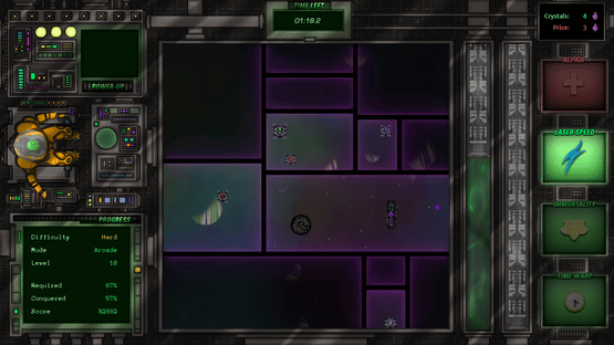 Luminosity is a fast paced arcade game. You take the control of a space ship and your objective is to close off the enemy drones and conquer a certain percent of the map in order to blow them up. Things quickly escalate and you face an increasing number of unique and challenging enemies and environments all trying to destroy your laser and blow your ship to pieces. To your aid you have a wide range of different Power Ups as well as the ability to upgrade your ship permanently between games. With randomly generated backgrounds and levels, the arcade mode stays fresh and new. Combined with the campaign this allows for endless hours of exciting gameplay.