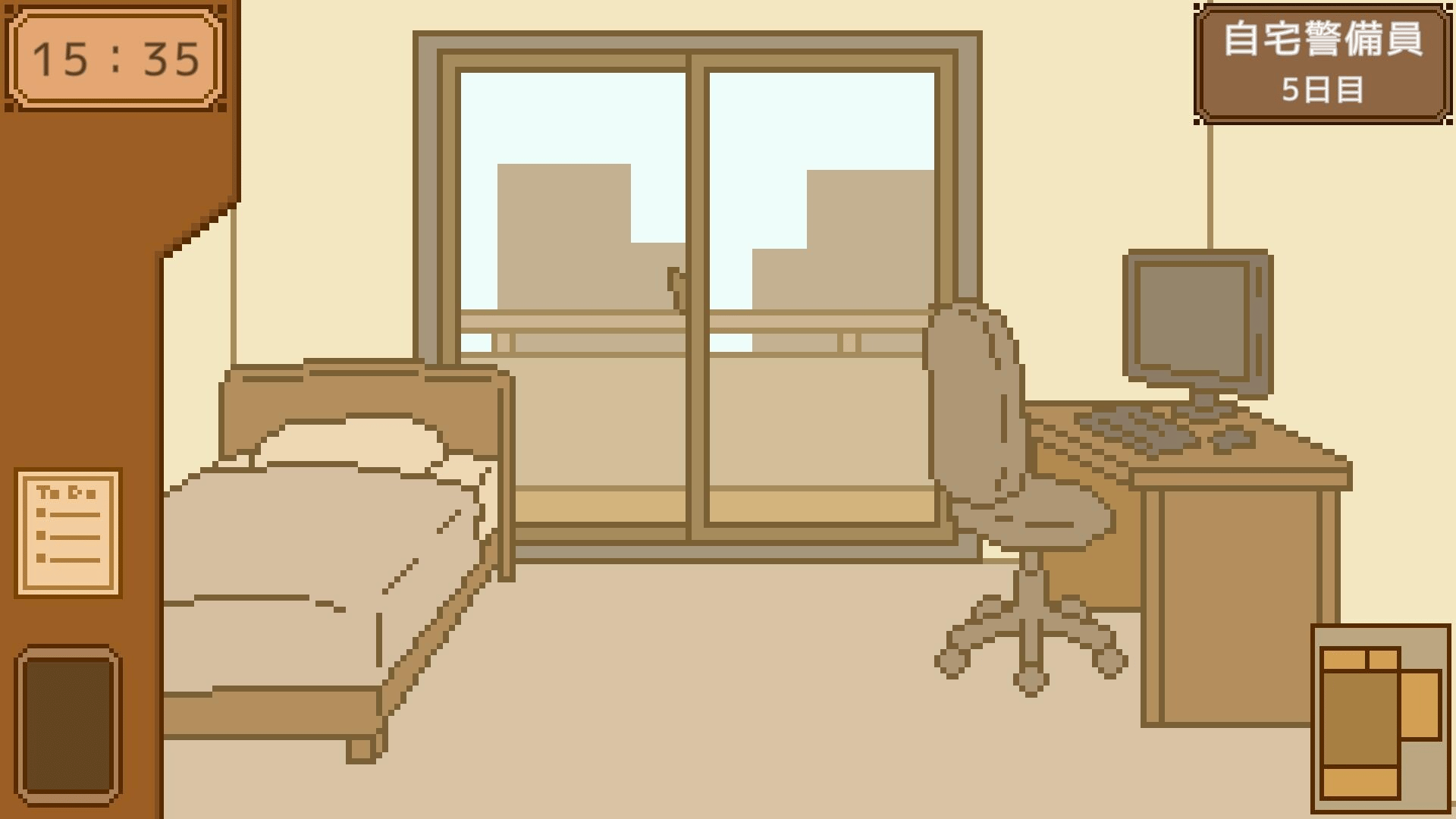 A self-proclaimed "stay-at-home security officer" lives a lazy life in a small apartment. But one day, a letter from Mom ends it all. Choose your actions by clicking, and watch the 2D story branch with each decision.