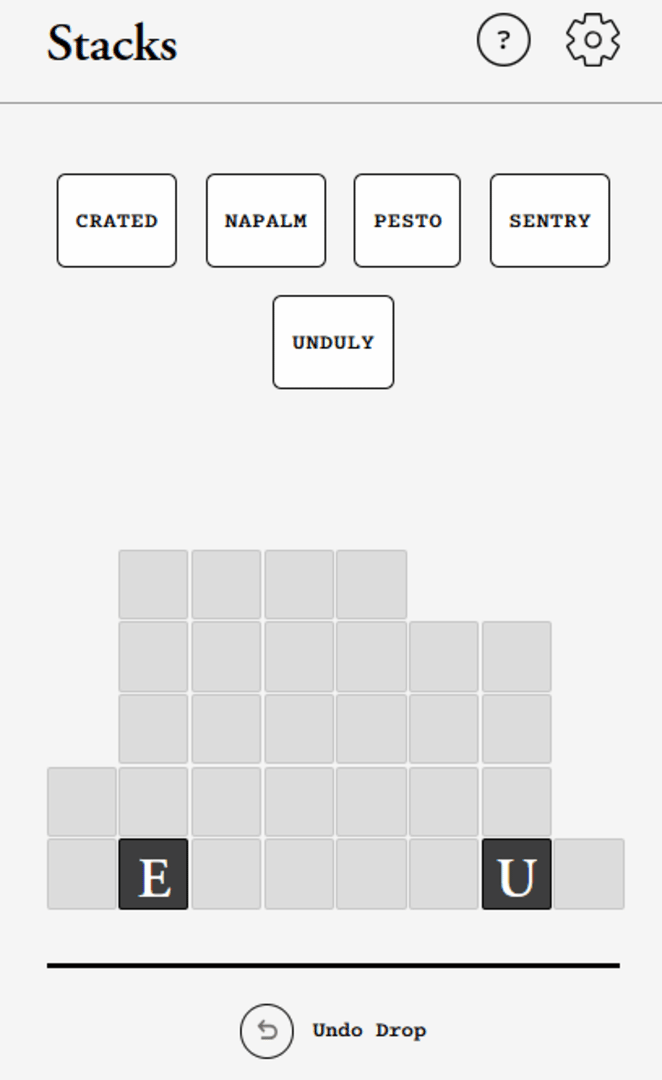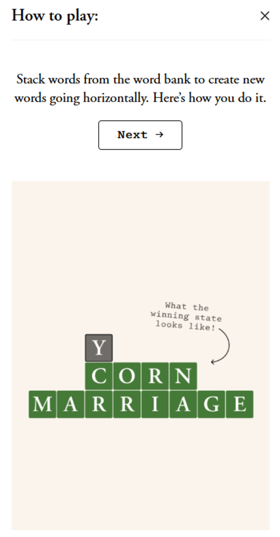Stack the words in an order and position that creates new words going horizontally.