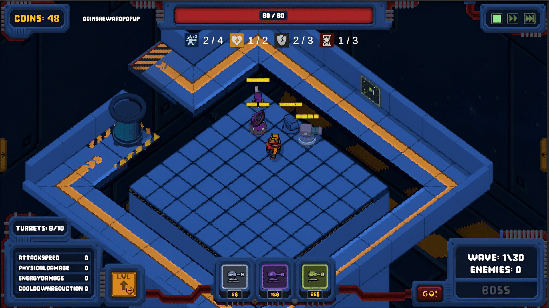Build wild multi-class turrets, stack abilities, and outsmart waves of enemies in this fast-paced, cartoon-style sci-fi tower defense! Combine synergies, manipulate cooldowns, and unleash chaos with explosive effects and clever combos.