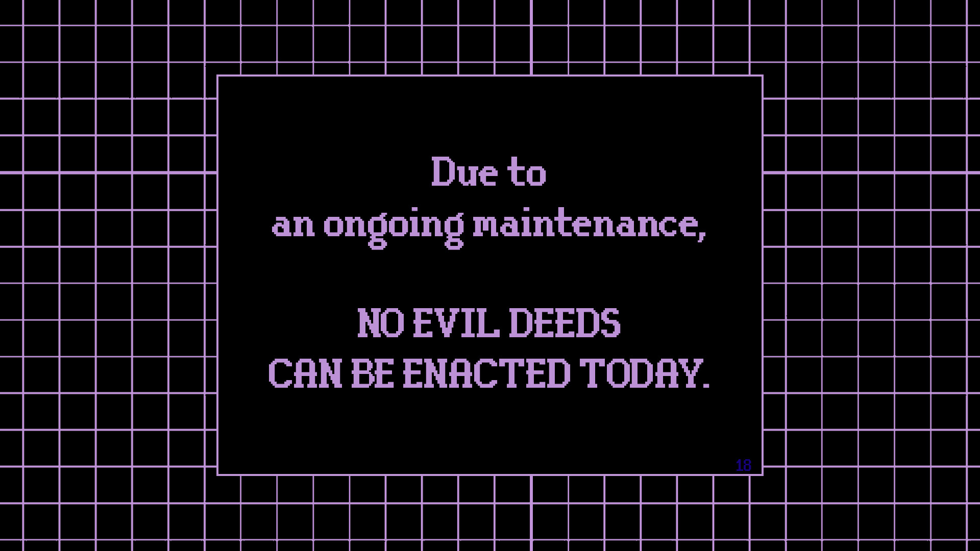 What does a SUPERVILLAIN do, when he is forbidden from doing anything evil for the day? WARNING: This is not the type of game where you can make meaningful choices.