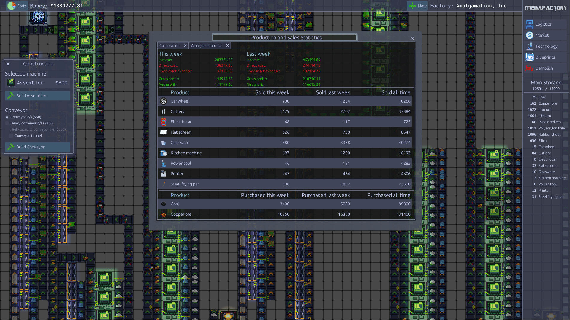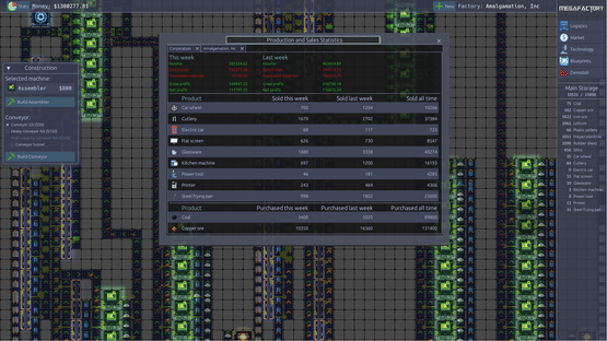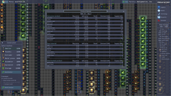 In MegaFactory Tycoon, you are the manager of a fully automated factory. The factory produces consumer products that can be sold for profit on the central market. The factory is fully simulated in real-time.