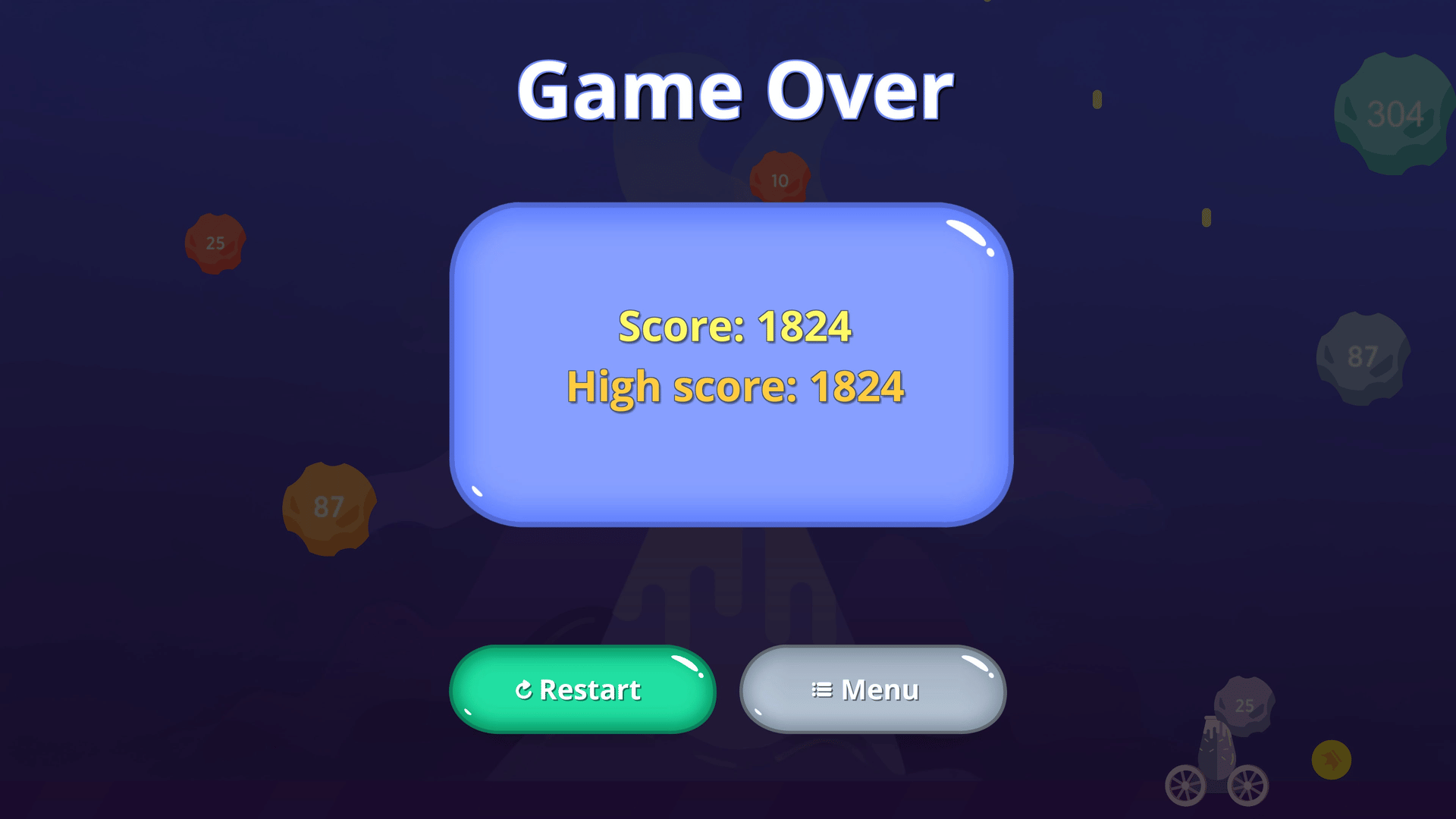 Meteor Break Mission is a 2D arcade shooter where you control a cannon to destroy falling meteors, earn points and money, and upgrade your health, fire rate, and shot power. Survive as long as you can and aim for the highest score!