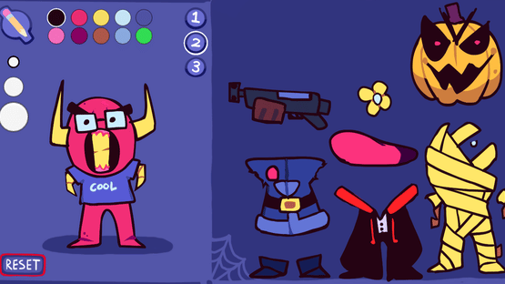 It's Halloween, so it's time to put together a costume for this little creature! Drag on clothes or draw on new expressions to make your own creations!