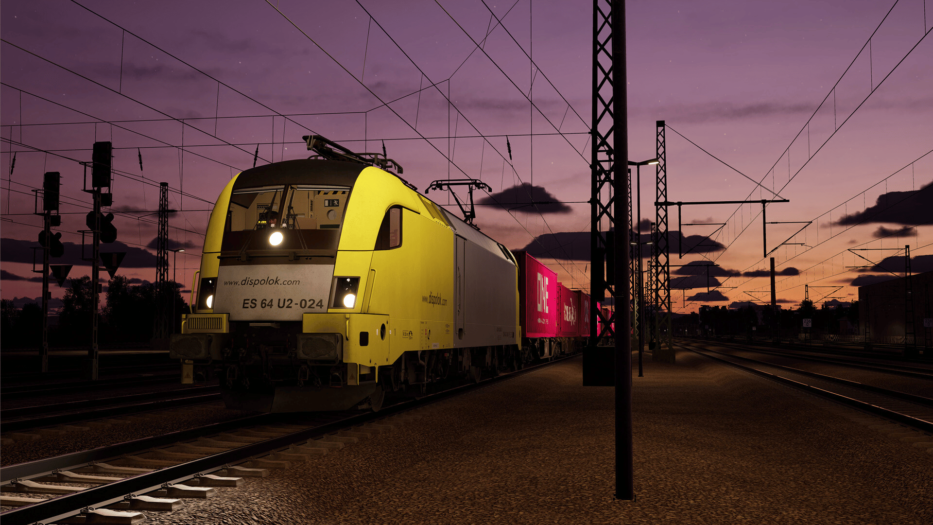 Dispolok delivering duties await – climb aboard the sleek and stylish EuroSprinter dressed in iconic yellow accents, ready for service on nightly fast freight trains with Train Sim World: Dispolok BR 182!