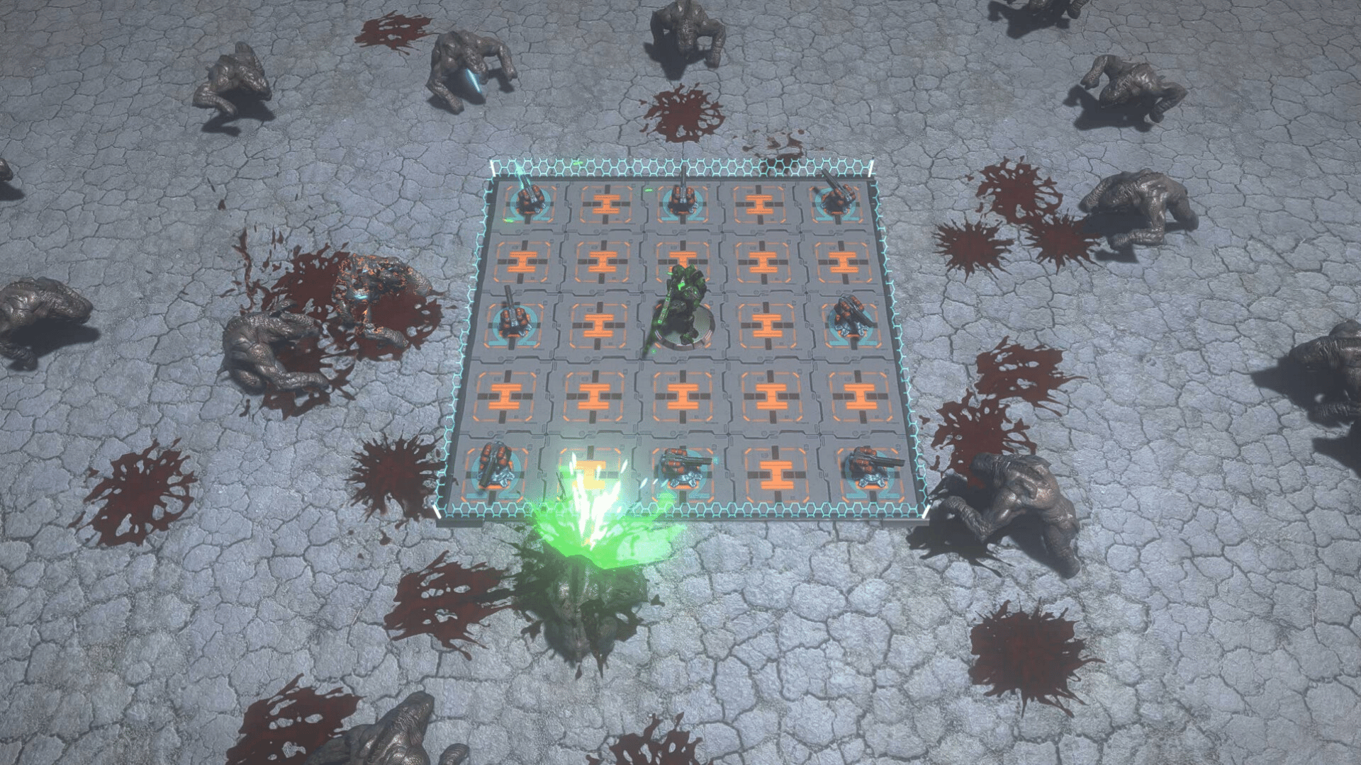 A tower defense game where each turret has unique mechanics. You can freely place them on a 5×5 grid, and your goal is to eliminate all enemies.
