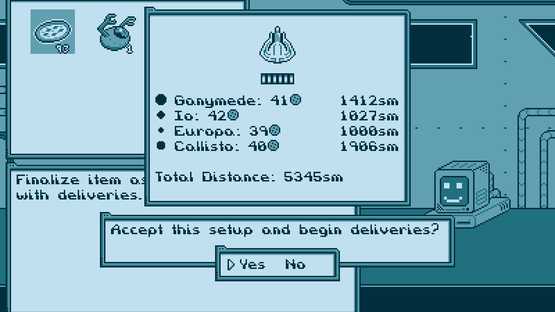 The year is 2010 A.D.—The Future—and your mission is to be the coolest pizza delivery business in the Jovian system. Cut through traffic, avoid the police, and deliver pizzas to the moons of Jupiter! Save up your money to buy better ships and upgrade your pizzeria. Just look out for the competition...!