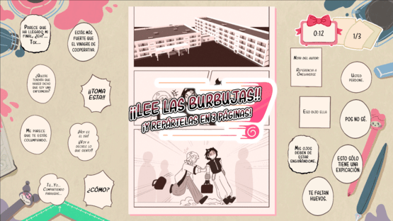 It's deadline time! Stick the speech bubbles from a manga together against the clock! Speed Bubble is a fast-paced experience in which you will try to make sense of the ridiculous dialogues in a manga. Lay out the speech bubbles (there are 90 different ones!) as best you can, and have fun reading the nonsense you have just created.