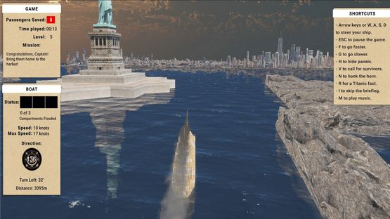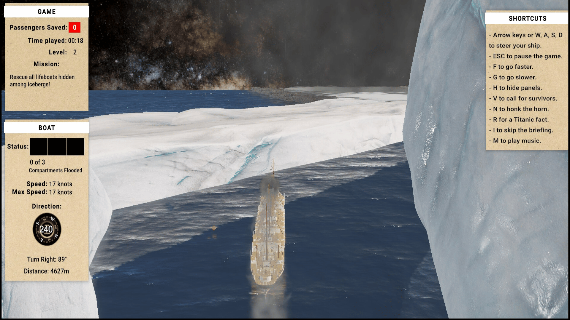 Command the RMS Carpathia in 1912! Rescue Titanic survivors from icy waters, navigate treacherous icebergs, and deliver them to New York. Prepare for a challenging voyage through four distinct levels, each testing your navigation skills and resolve.
