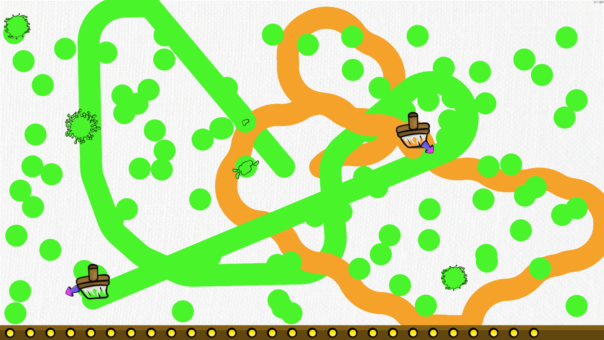 Paint Rumble is a fast-paced party game where strategy and reflexes matter! Cover the most area in 2-minute battles, playing solo, in teams, or against friends locally or online. Choose Wolfy, Quacky, Tigro, or Lucky, grab power-ups, and use your agility to dominate the battlefield!