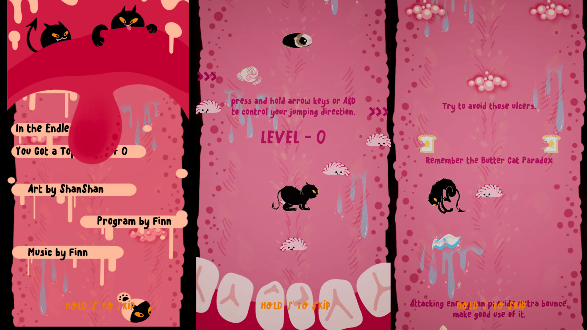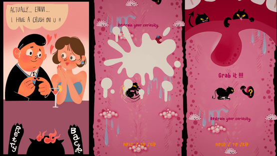 Cat Got Your Tongue is a vertical platformer where you play a mischievous black cat, jumping and attacking across a tongue to stop the protagonist from speaking, with quirky art, playful interactions, and fast-paced, challenging yet casual gameplay.