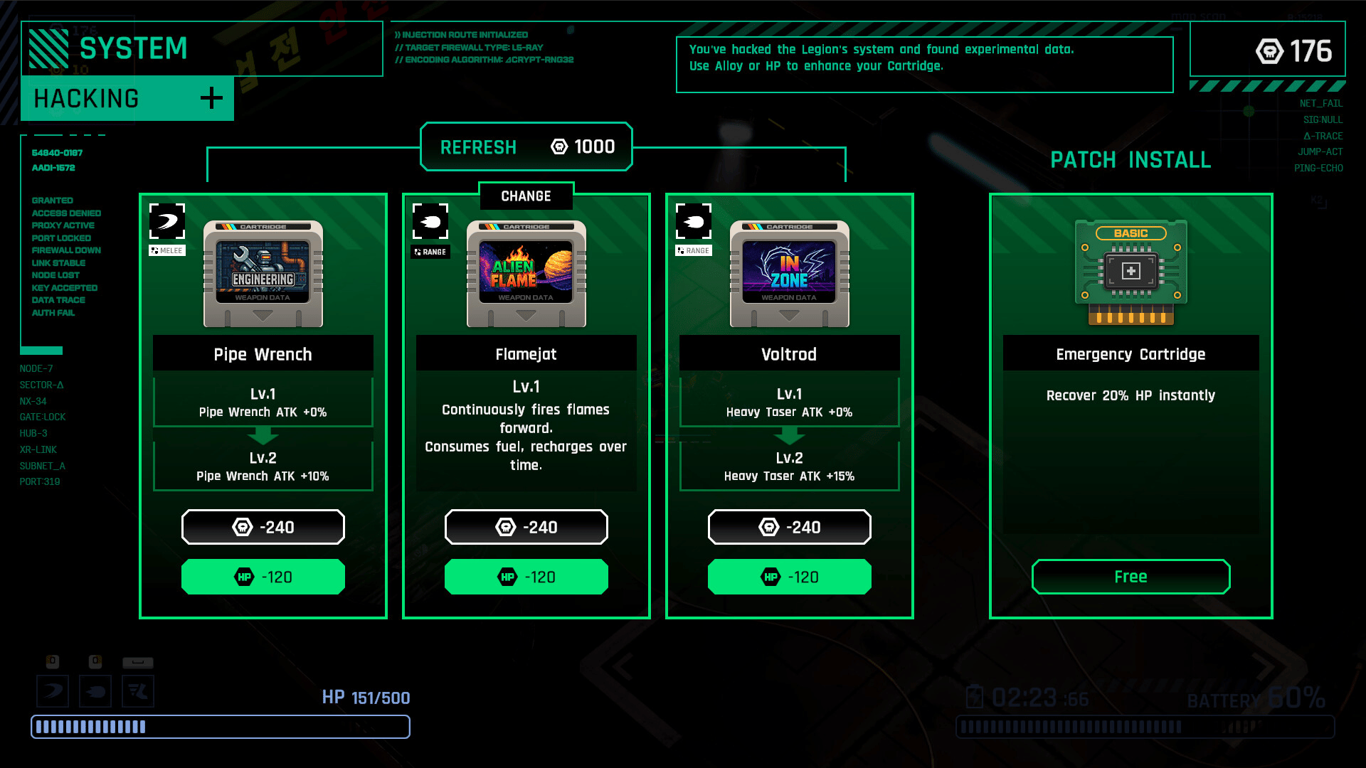A roguelike action game against evolving enemies. Wipe out the Legion across shifting battlefields, hack enemy facilities, and grow stronger with every Cartridge. Get ready for intense retro sci-fi combat!
