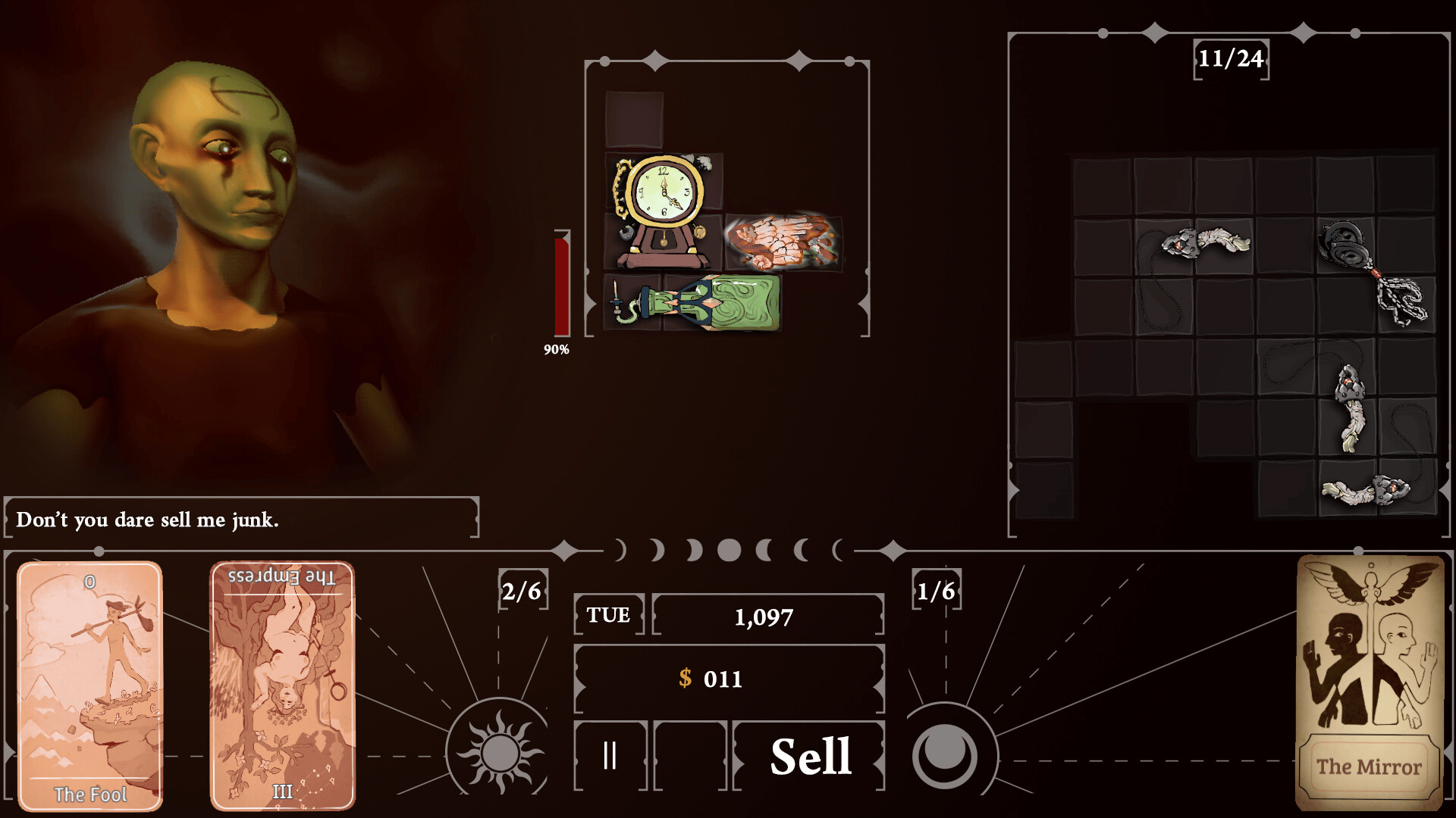 A gothic roguelike shopkeeping game where you sell antiques, read the tarot, and manage your inventory to survive crushing rent increases. Match strange customers with the relics they crave, unlock powerful cards, and gamble your way out of debt, one deal at a time.