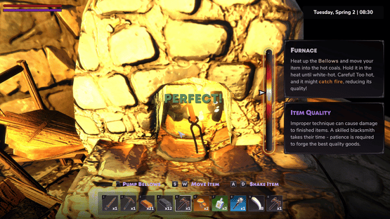 Tempered Hue is a third-person grim-cozy game about running a blacksmith shop. Craft unique tools and items, sell your wares, and explore local caverns to gather crafting materials. Navigate treacherous caverns with your trusty grappler alone or with friends in this blacksmith slice of life sim.