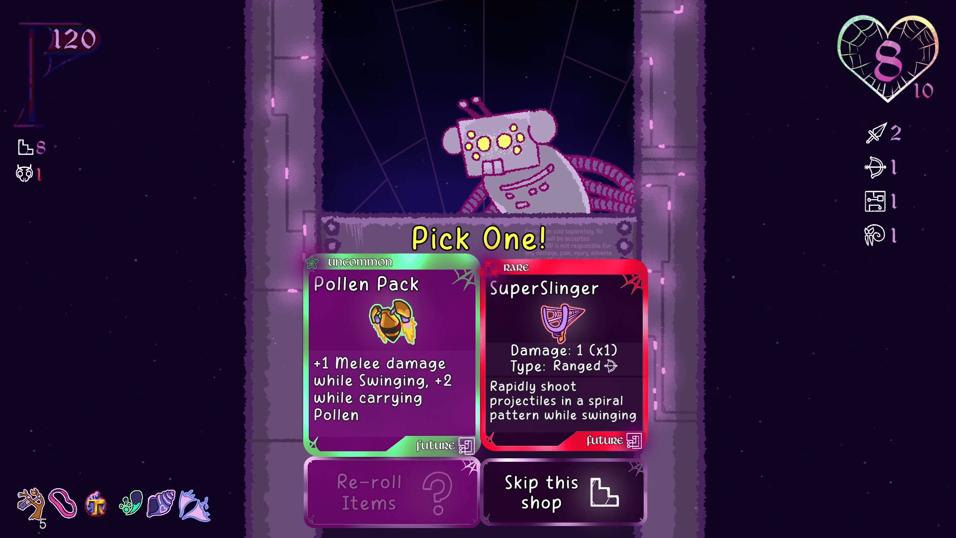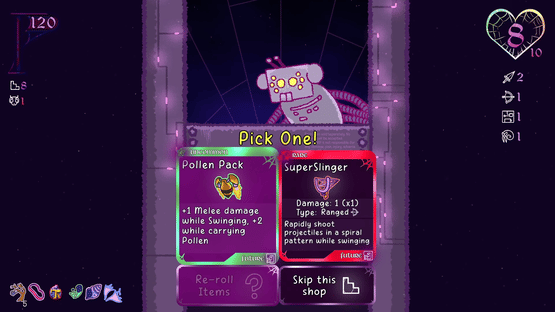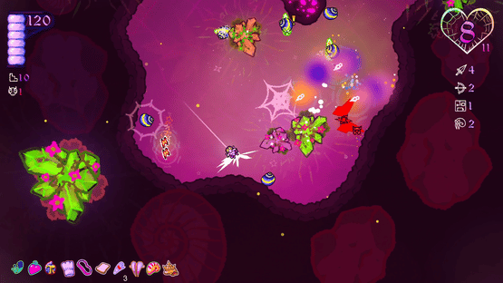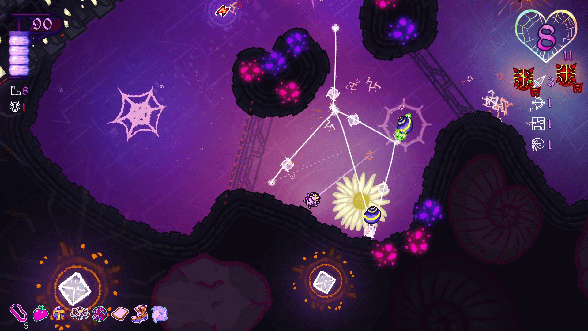 Websy and the Time Rogues is an action roguelike game about a spider using webs to swing through levels and string together enemies for combo attacks. The game centres around Websy, a small jumping spider who gets pulled out of time and recruited by the mysterious Time Rogues, an organization which fights evil enemies invading the past, present and future. Websy and their new allies must use their unique abilities to defend time and space by defeating enemy incursions and closing the time portals.