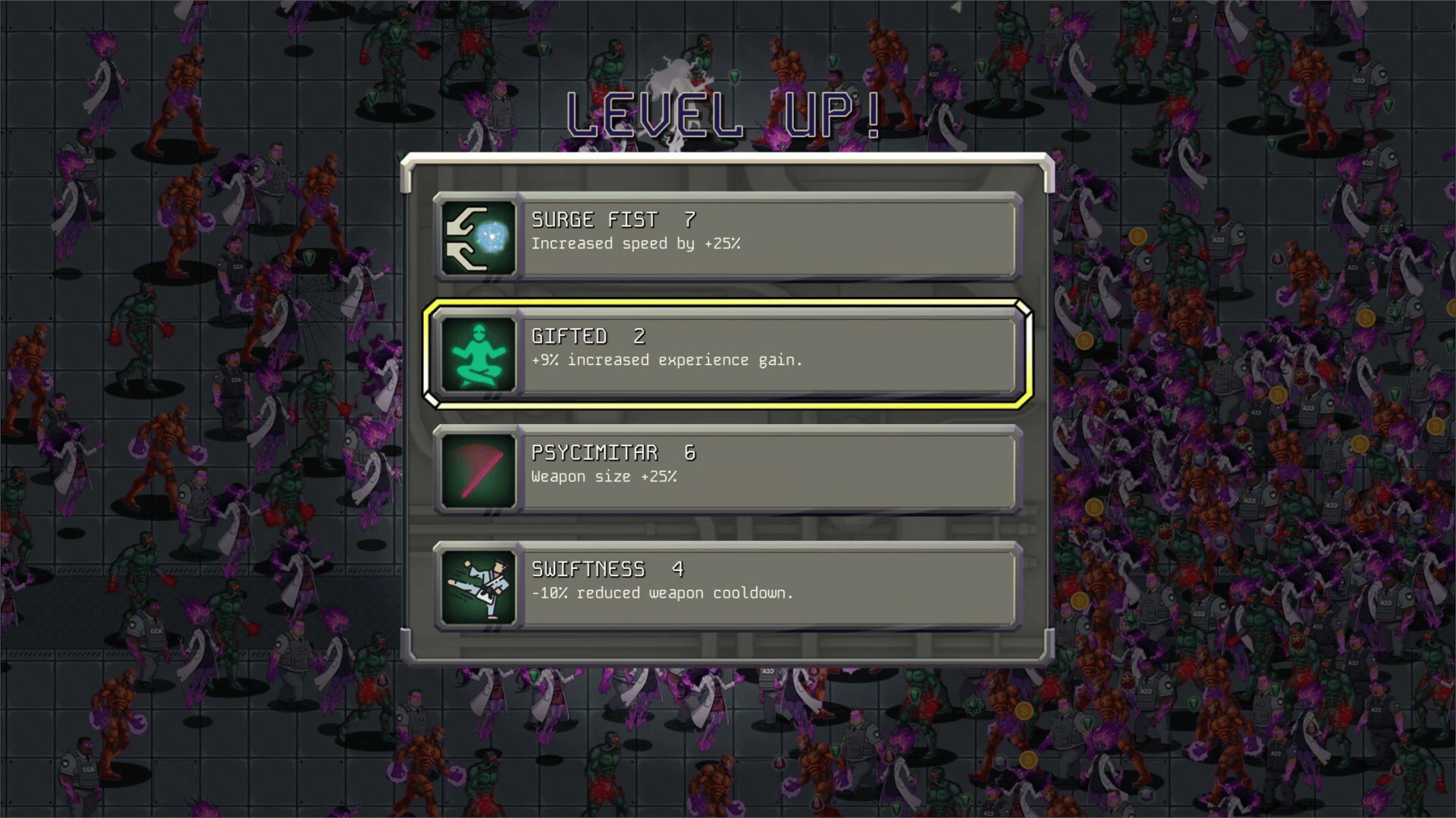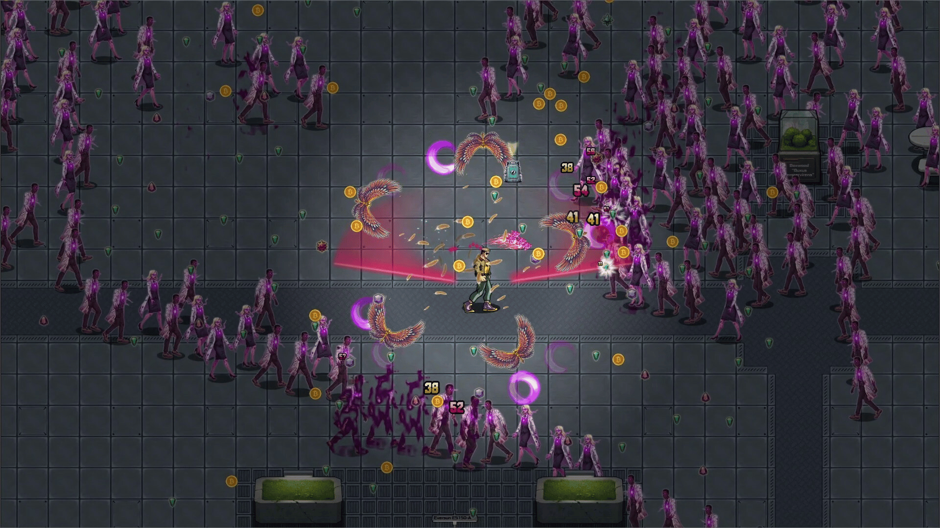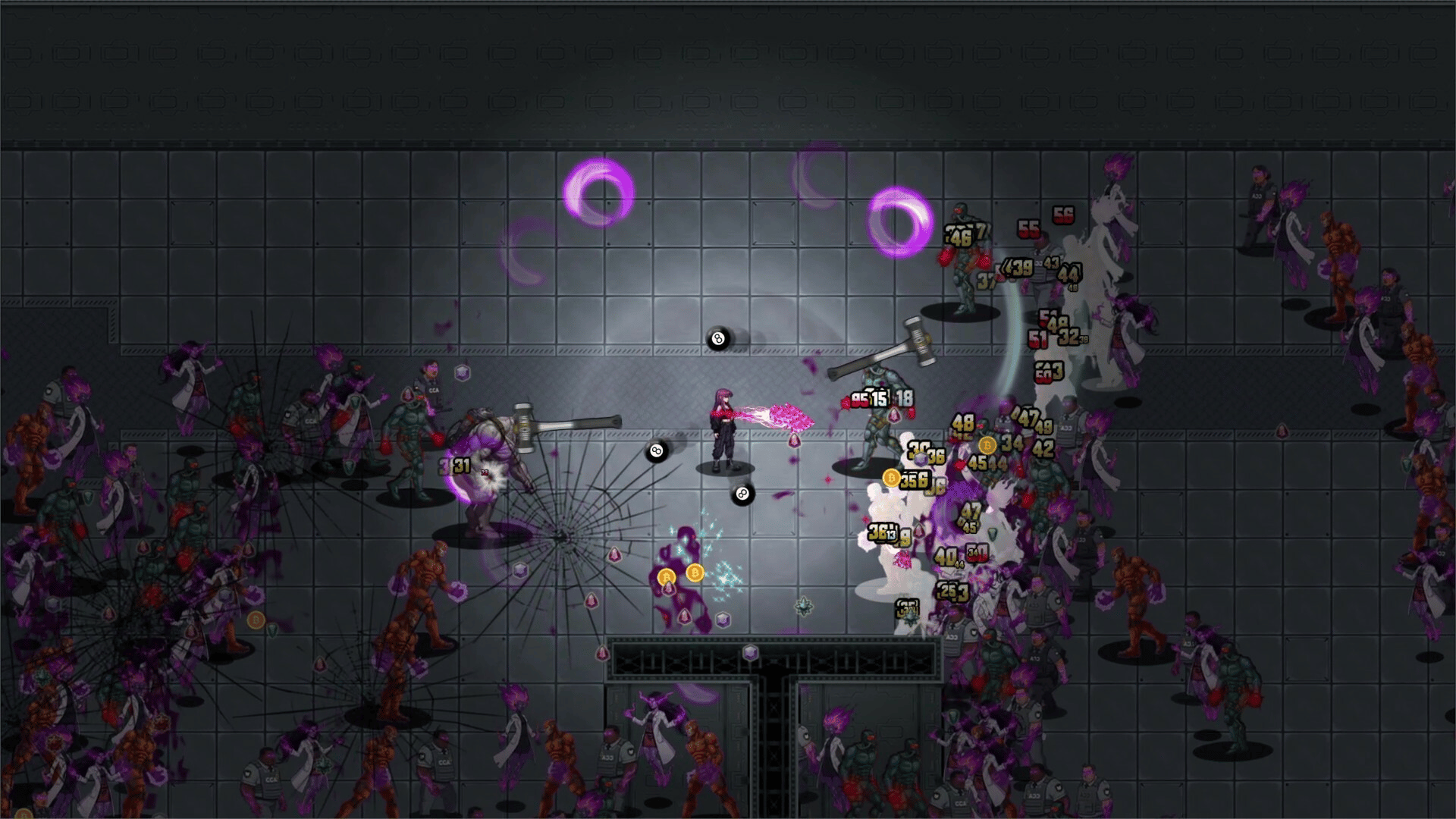 A survivors-like bullet-heaven with auto-shooting. Survive the ever-escalating waves of tainted staff and abominations in the secret research facility. Choose, upgrade and evolve your skills and weapons. Gain achievements to unlock more content. Progress the meta with permanent enhancements.