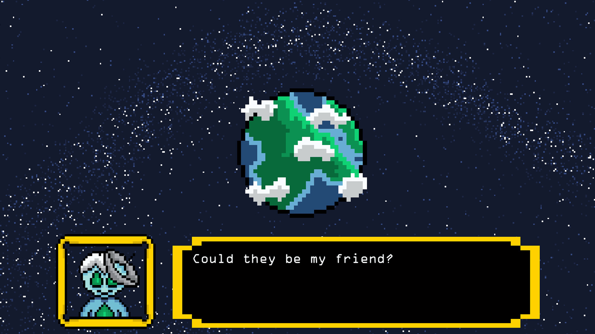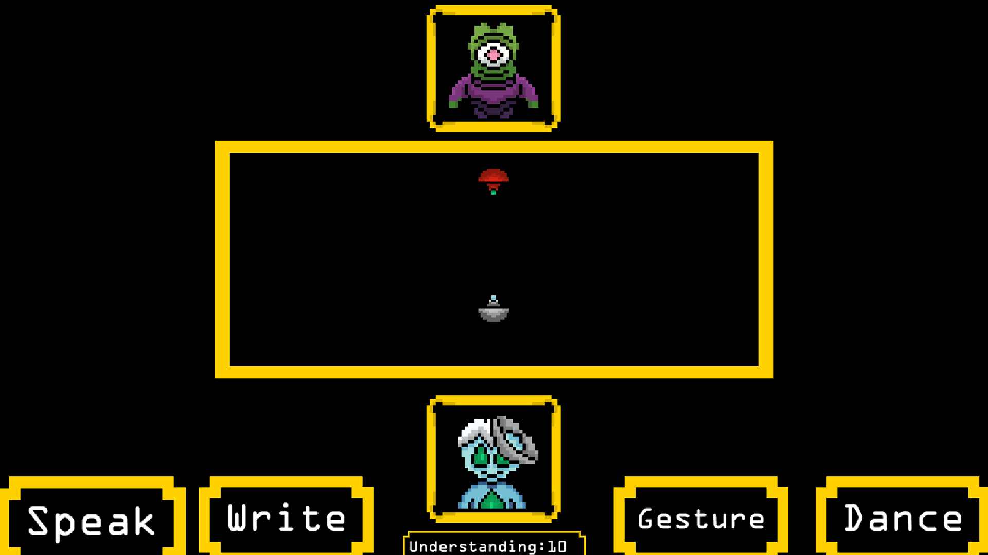 The Search for Above Average Life is a light-hearted bullet-hell adventure where friendship is a matter of overcoming the language barrier. Play as SAAL, a lonely exploration robot, scanning planets and befriending the galaxy’s strangest inhabitants. Choose how to communicate—Speak, Write, Gesture, or Dance—then dodge red “misunderstanding” projectiles and collect green “understanding” to build trust. Expand your star map, meet eccentric aliens, unlock hints, and discover what it means to find life that’s truly above average.