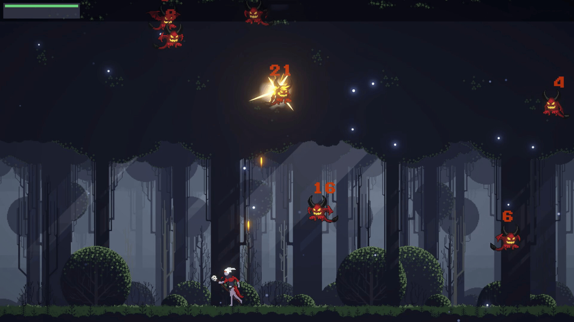 Dumb Witchfinder is a 2D pixel roguelike platformer where you play as a dark elf battling demons in a forest. Dodge enemy attacks and kill them to upgrade your abilities.