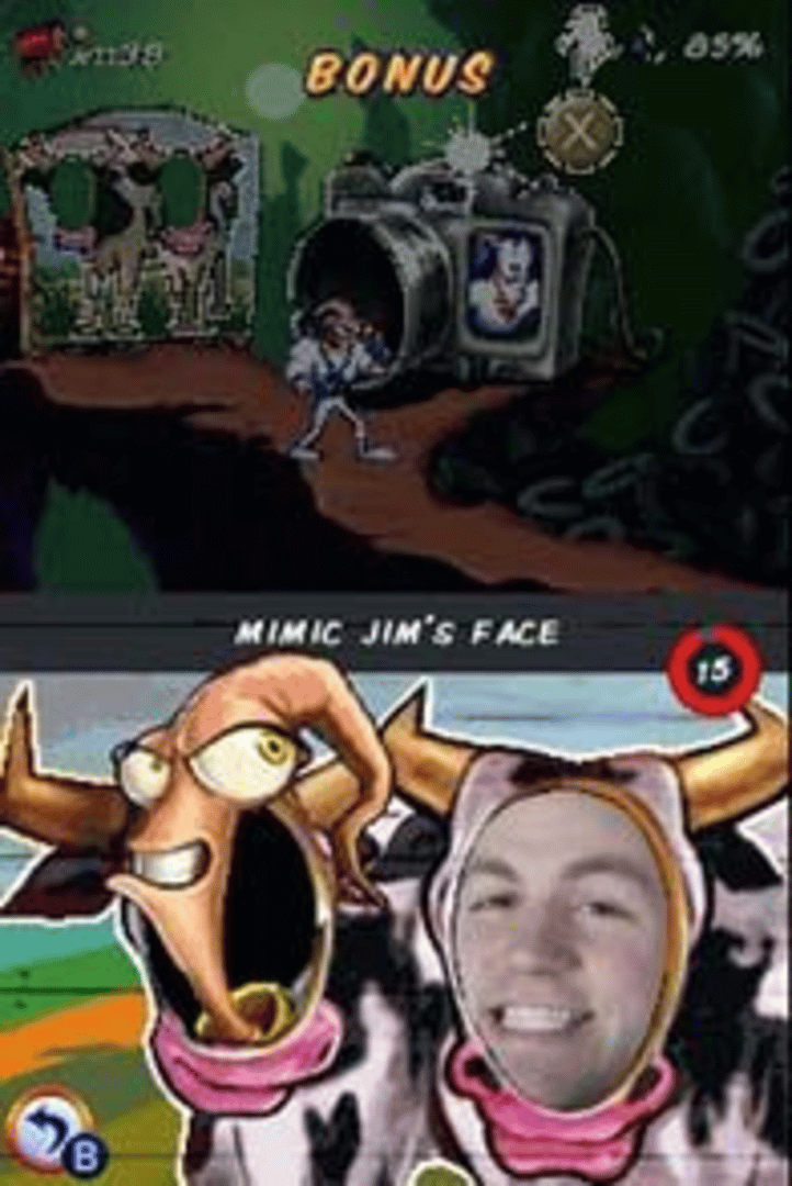 The Nintendo DSi version also features the same level changes and re-recorded voice. In addition to this, it also has bonuses based around face tracking challenges where you copy Jim's facial expressions in the DSi's camera.