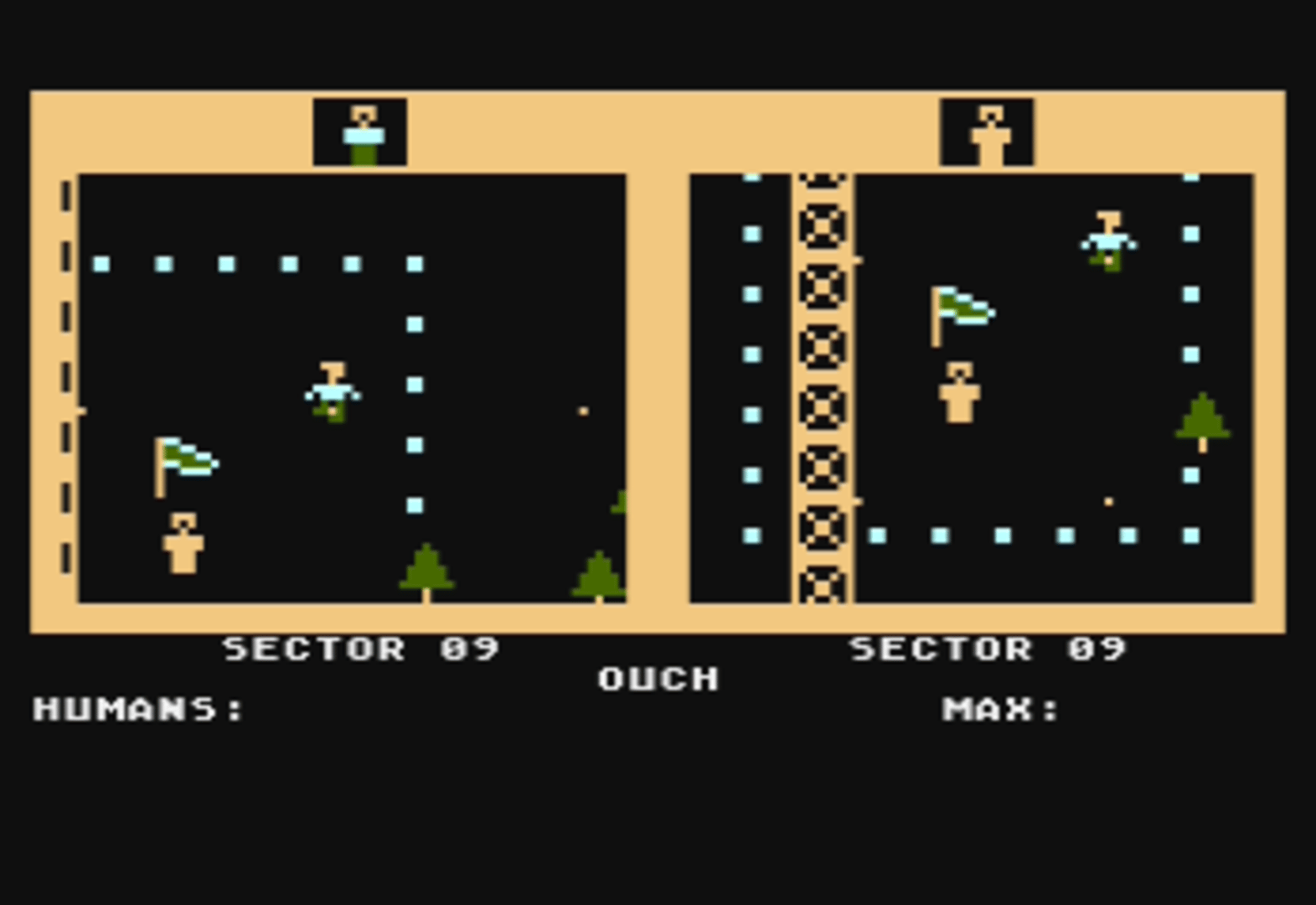 Max, the Guardian of the Galactic Tollway, challenges you and your partner to play BANNERCATCH—a five-level team game of strategy and skill. You and your partner each control two humanoid robots. Max controls his four highly skilled robots. To win, your humanoids must travel to Max's zone, capture his flag, and bring it home. But be careful! As you and your humanoids are zeroing in on Max's flag, Max's robots are coming after yours. You and your partner must plan your moves carefully and work as a team. You must also break the secret binary code that Max uses to communicate with his robots. Winning won't be easy, but the rewards are great. Win enough games, and you will be among the first humanoids to see Max's face.