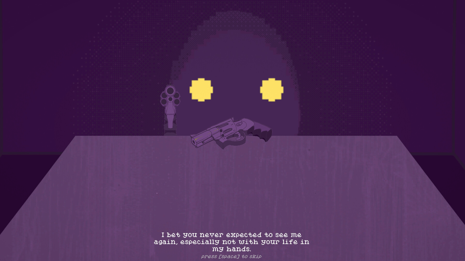 Pigeon Coo-lette is a part-puzzle-part-rhythm game developed by Northeastern University students. It focuses on the simple mechanic of following a pattern of bullets and blanks as they are loaded into a gun and then repeating them, with a "serious" yet "silly" story.