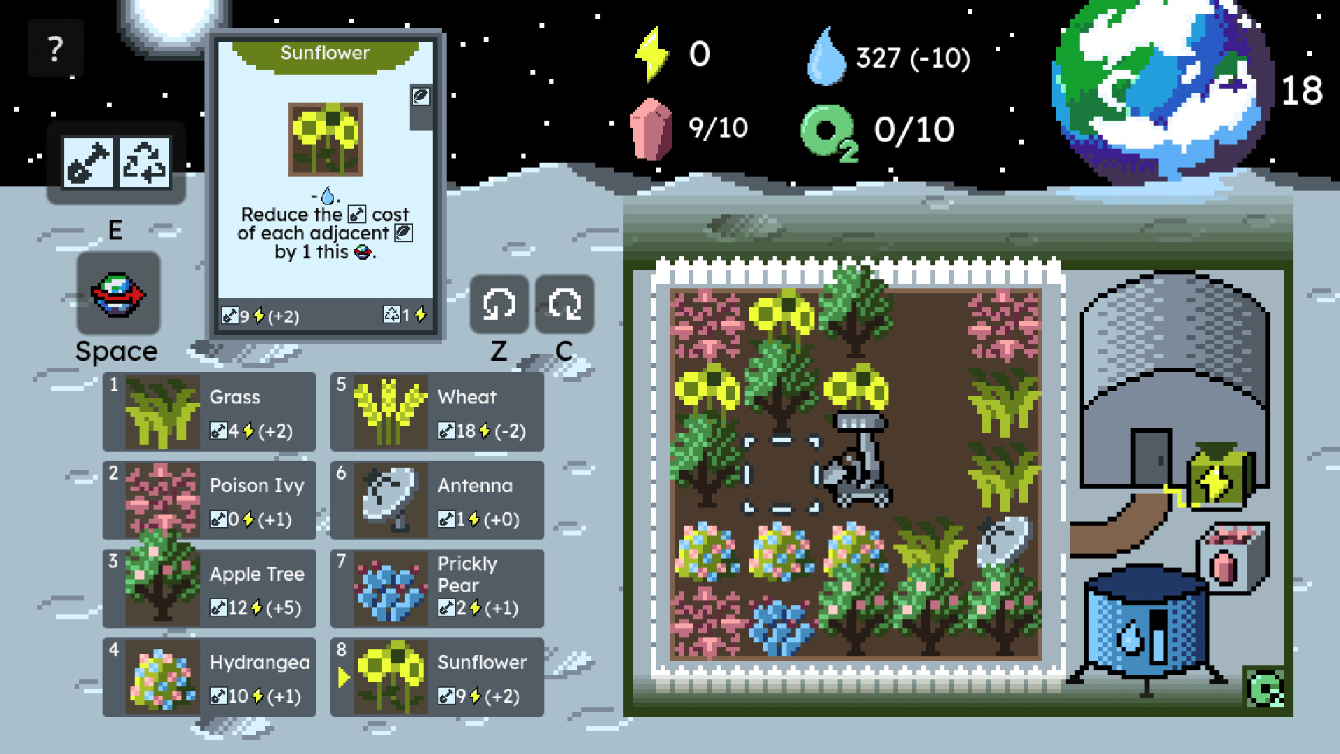 A puzzle strategy game, and a deckbuilder without a deck. Cultivate a garden while conserving water. Your only opponent is access to an undo button, and a sense of perfectionism.