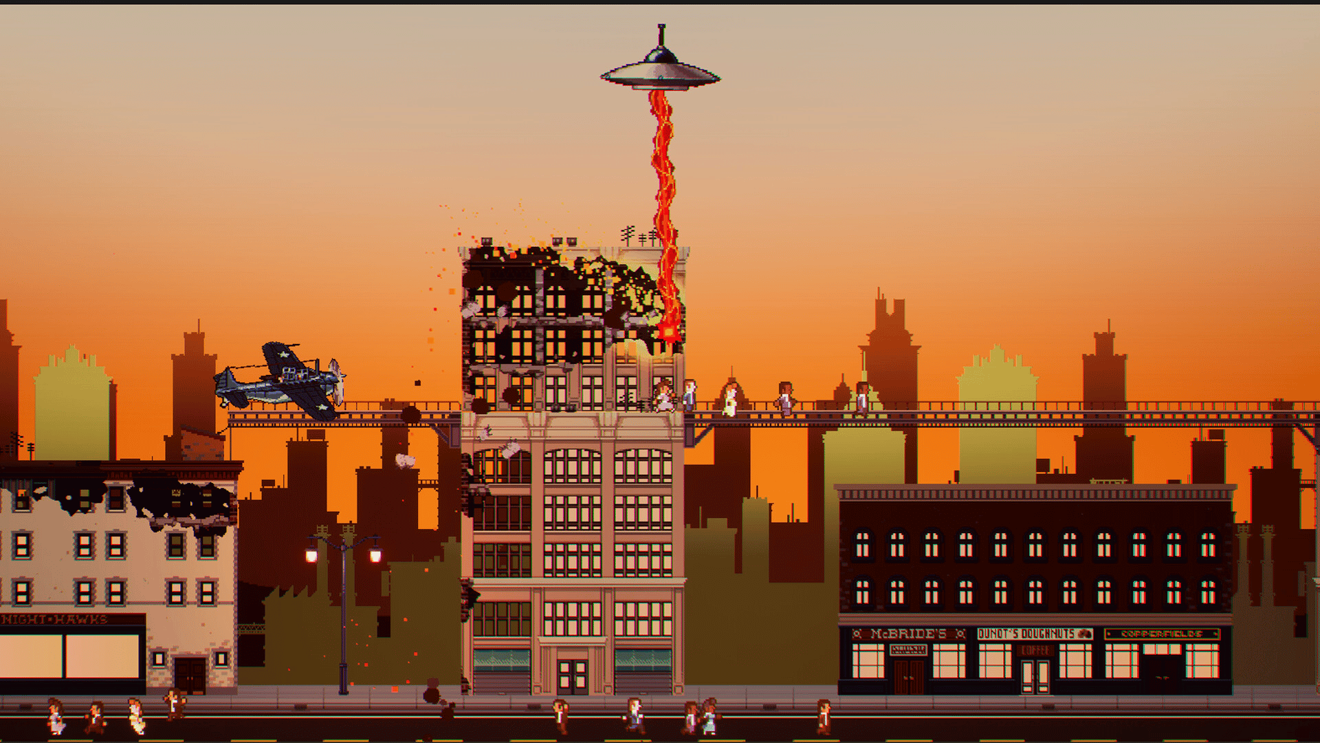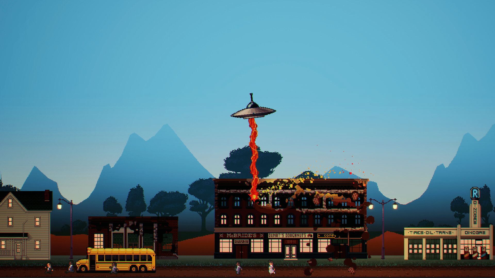 A side scrolling side-on shooter from the depths of a long-lost arcade cabinet where you take the role of a UFO on the hunt for human prey! Capture them alive with your tractor beam and pull them into your saucer while unleashing your heat ray upon tanks, planes, and all manner of military might!